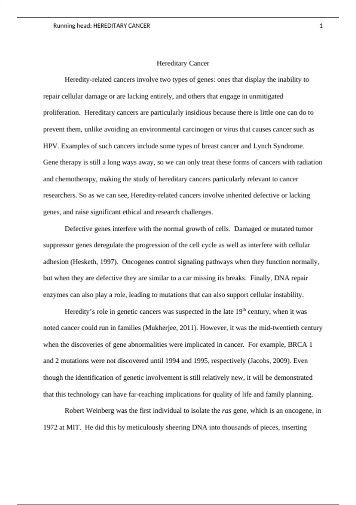 , Running head: HEREDITARY CANCER 2