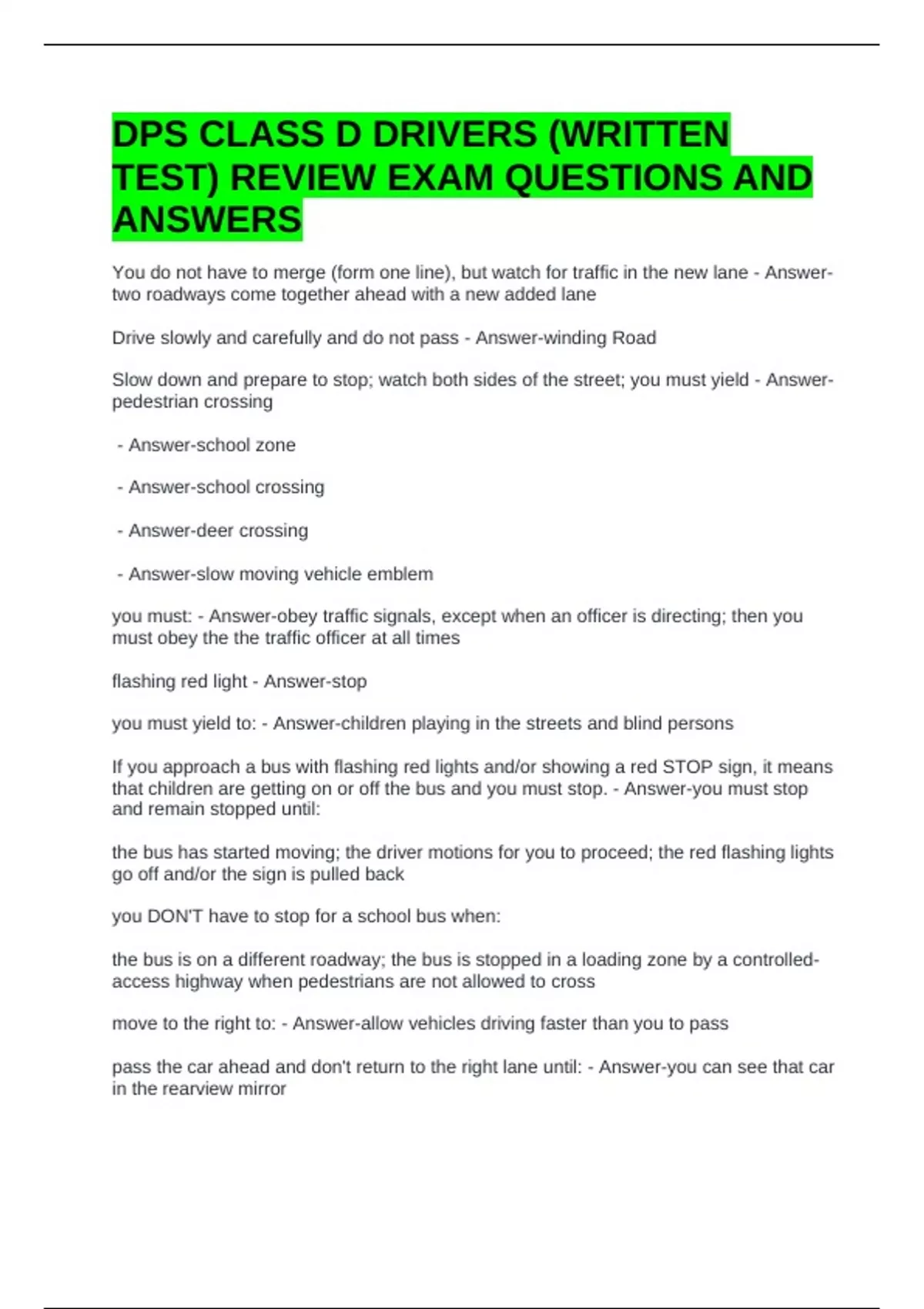 TEST) REVIEW EXAM QUESTIONS AND