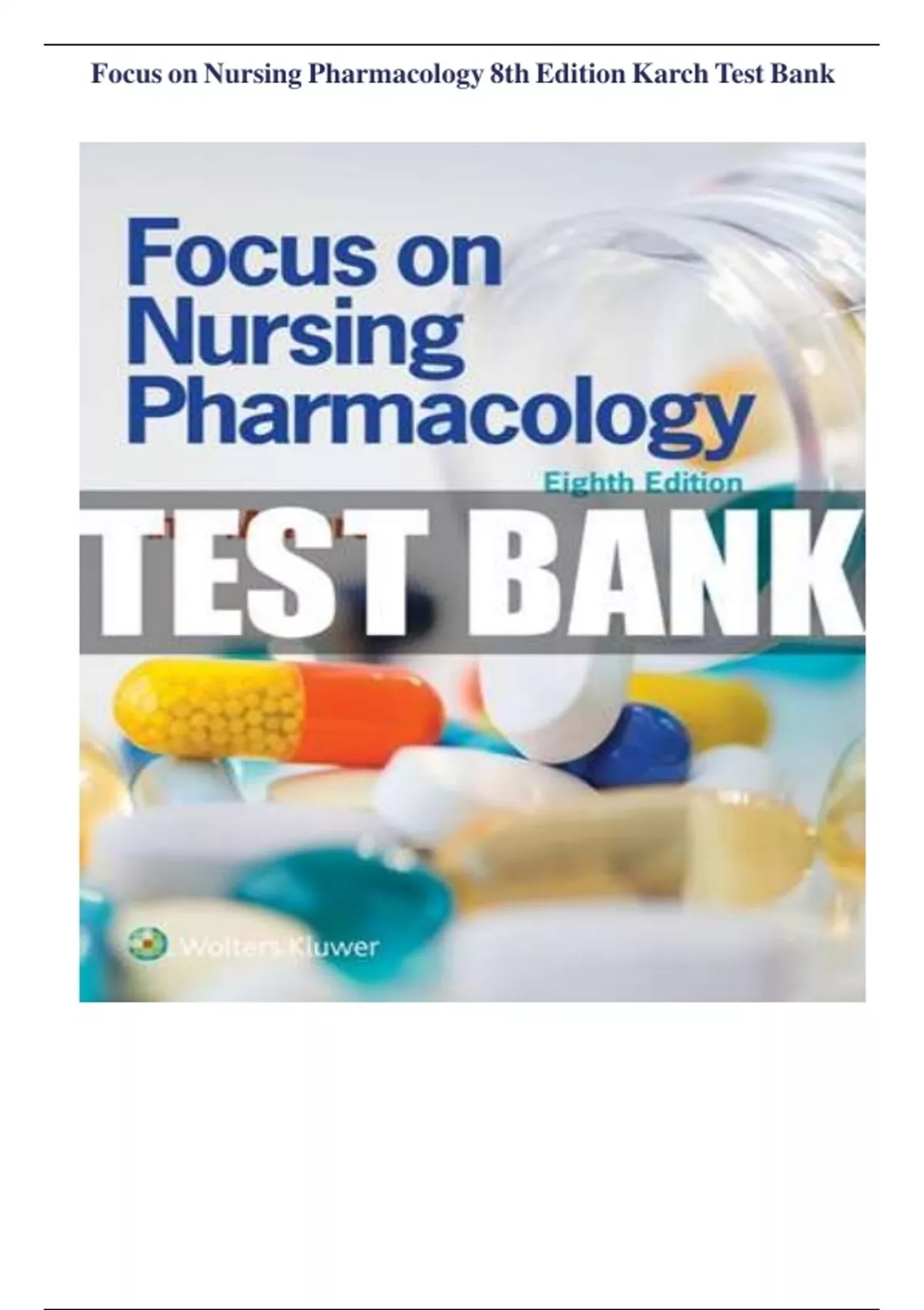 Focus on Nursing Pharmacology 8th Edition Karch Test Bank ALL CHAPTERS COVERED