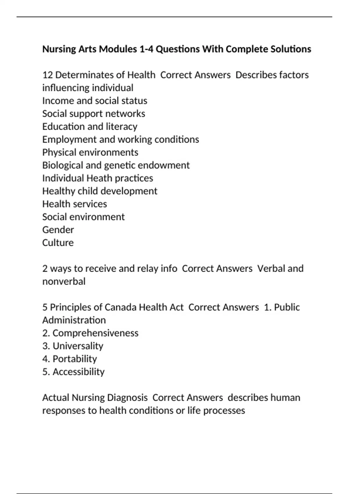 Actual Nursing Diagnosis Correct Answers describes human