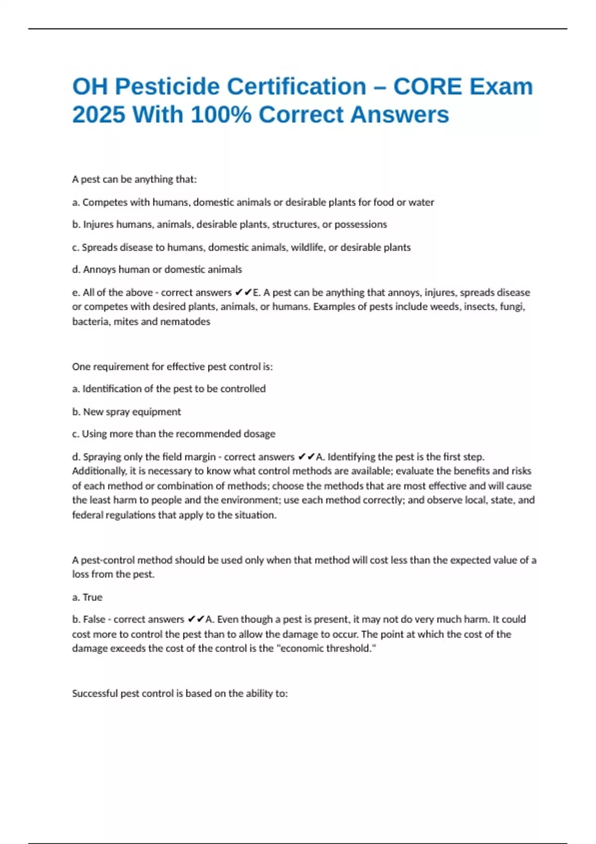 d. None of the above - correct answers ✔✔D. The best answer should be to: 1) keep pest damage to a