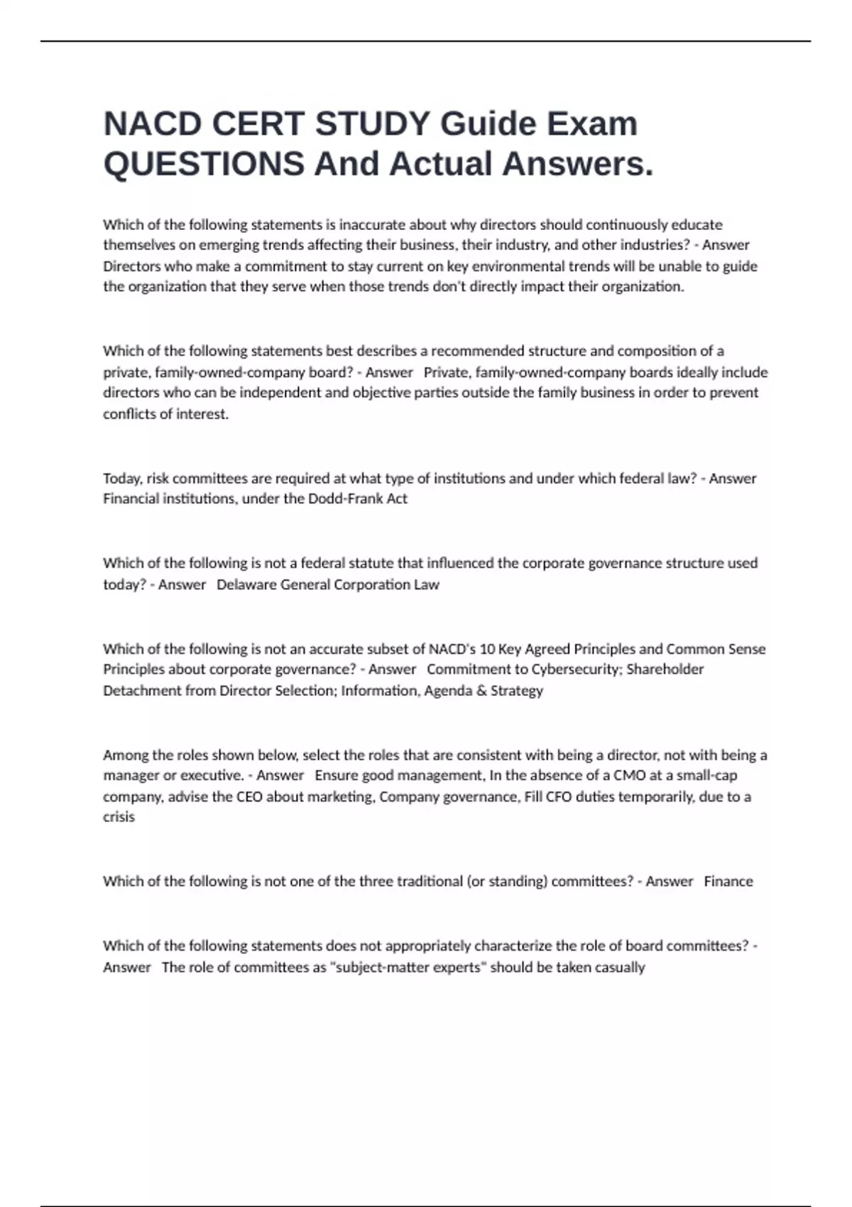Which of the following is not an accurate subset of NACD's 10 Key Agreed Principles and Common Sense
