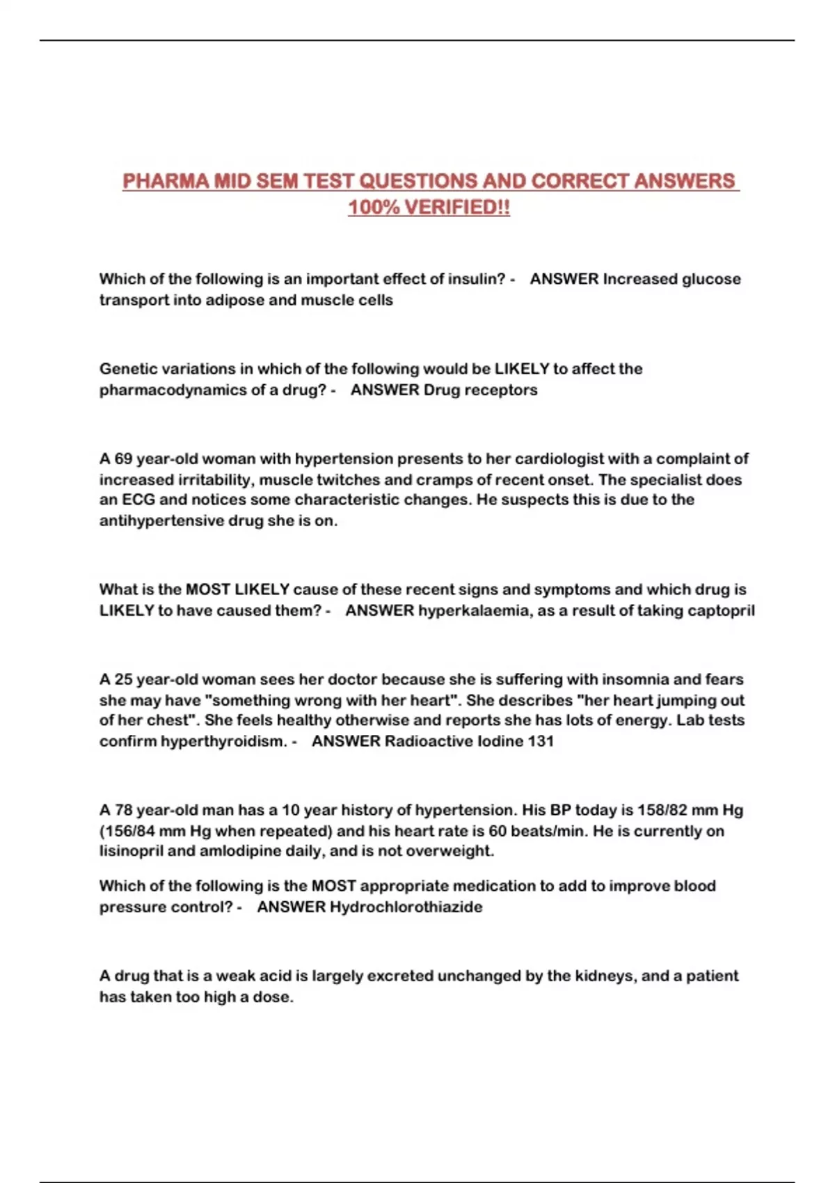PHARMA MID SEM TEST QUESTIONS AND CORRECT ANSWERS 100% VERIFIED!!