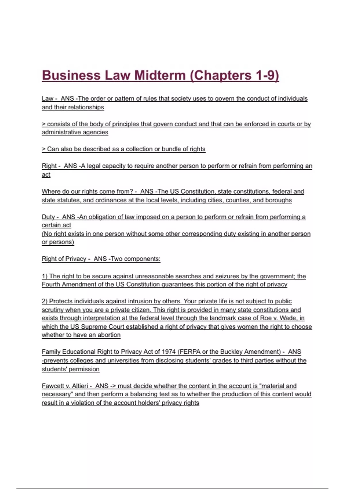 Law - ANS -The order or pattern of rules that society uses to govern the conduct of individuals