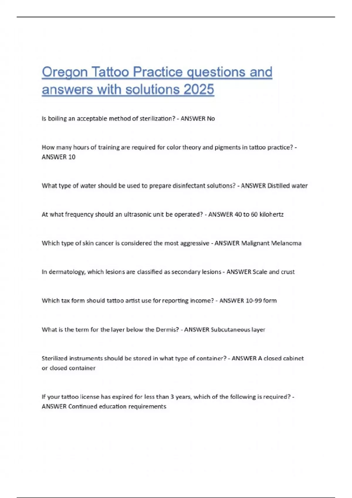 Oregon Tattoo Practice questions and answers with solutions 2025