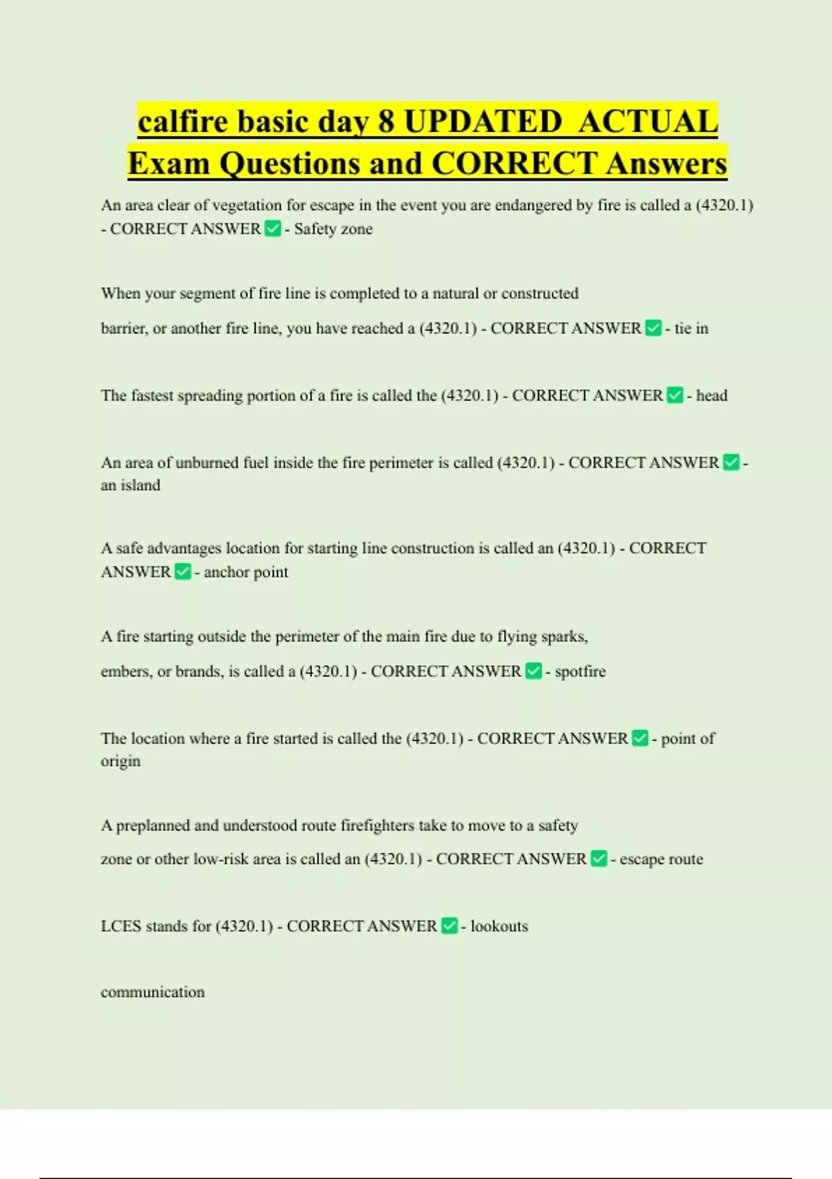 barrier, or another fire line, you have reached a (4320.1) - CORRECT ANSWER - tie in