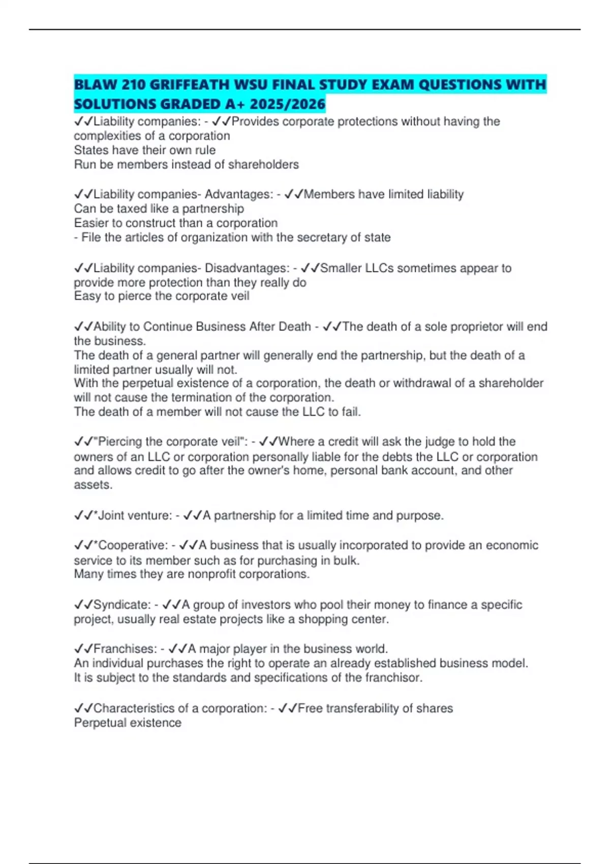 ✔✔Liability companies: - ✔✔Provides corporate protections without having the