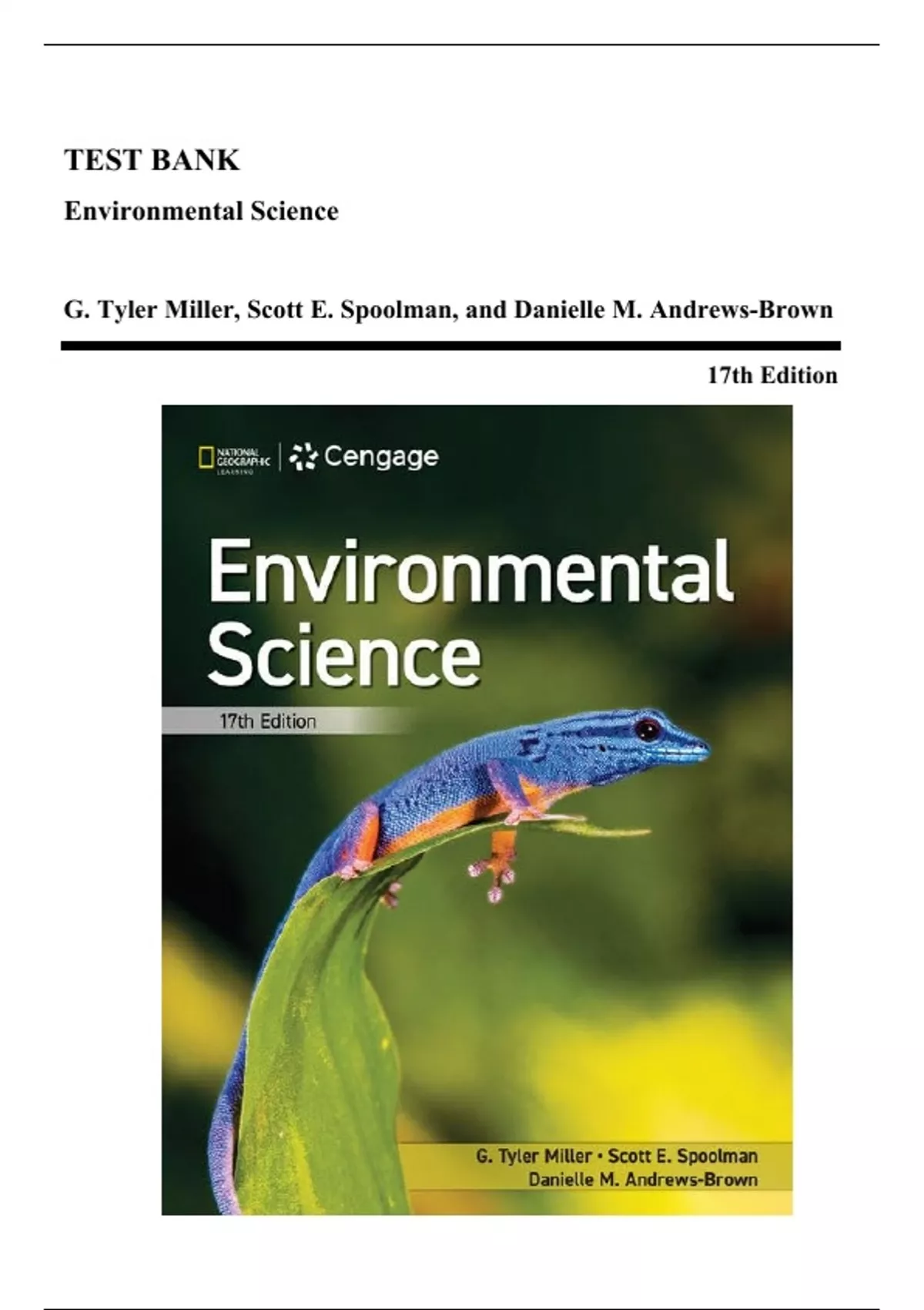 Test Bank - Environmental Science, 17th Edition (Miller, 2025)