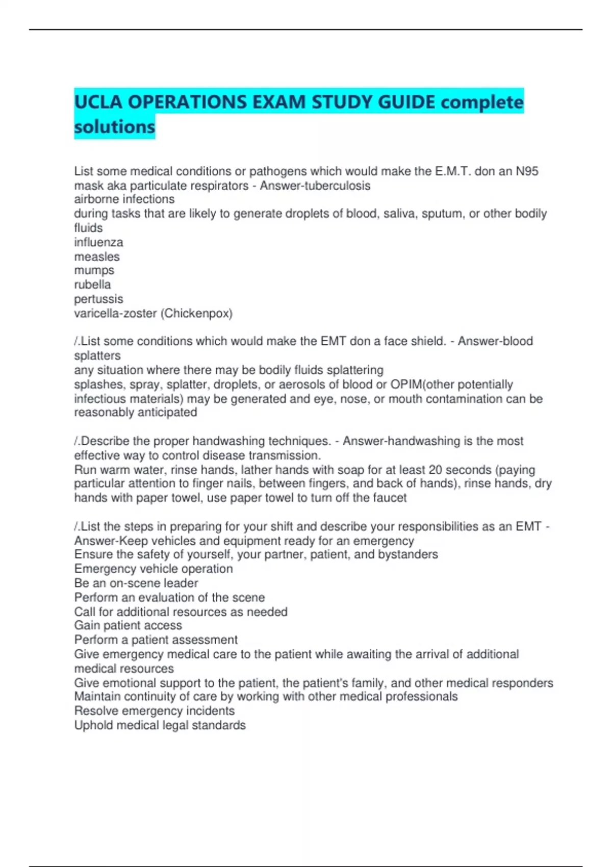 /.List the steps in preparing for your shift and describe your responsibilities as an EMT -