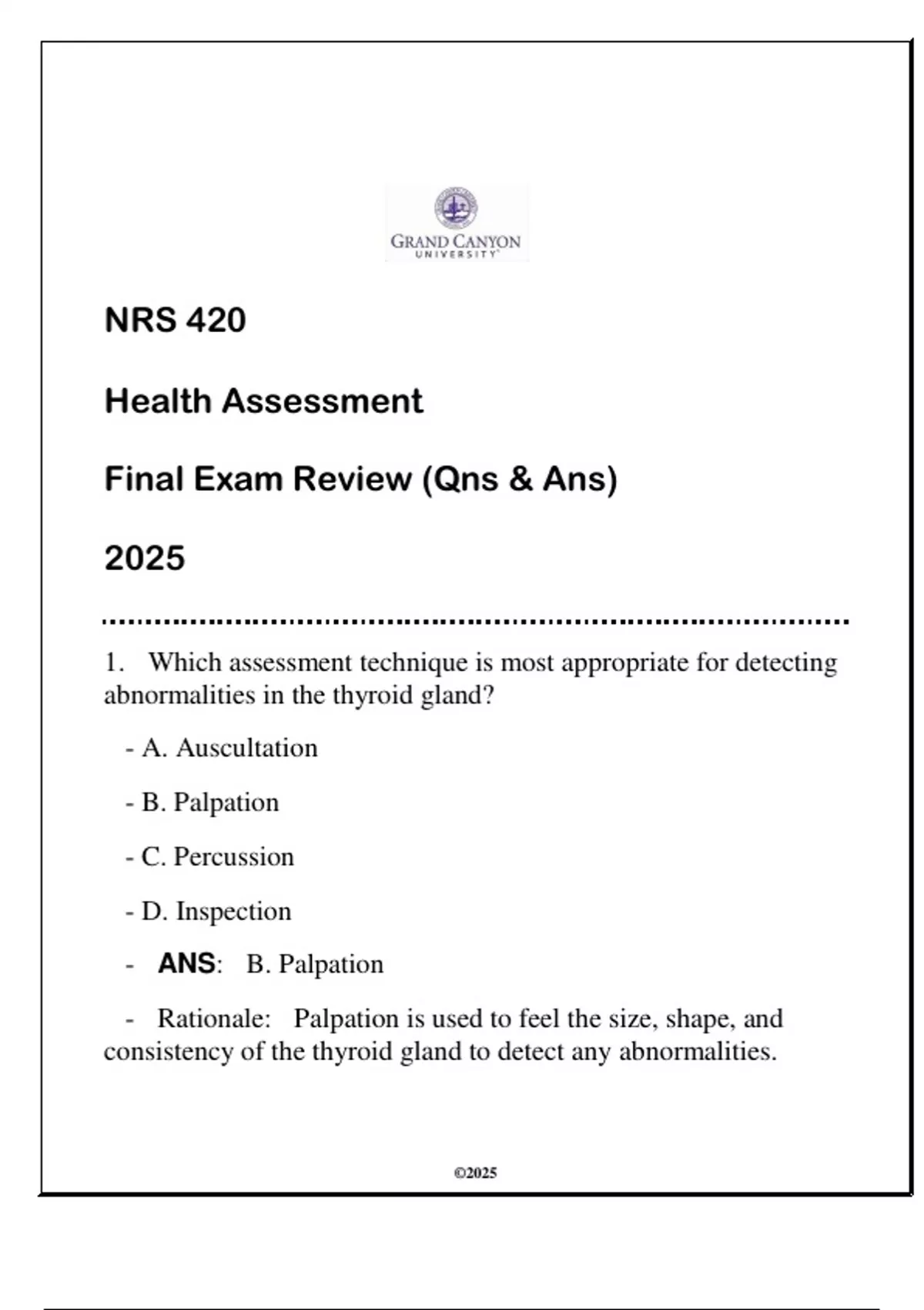 - ANS: B. Palpation