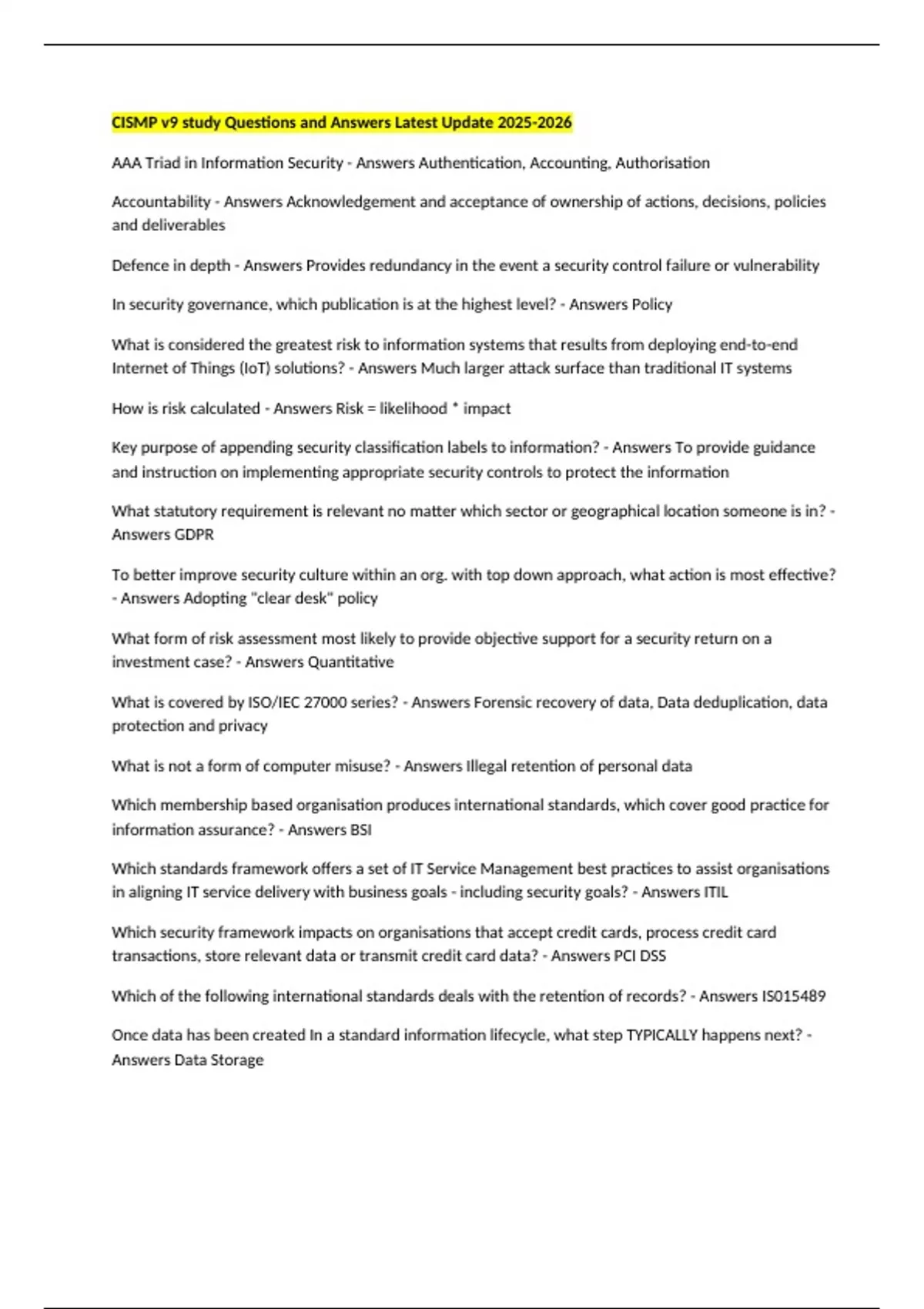 CISMP v9 study Questions and Answers Latest Update 2025-2026