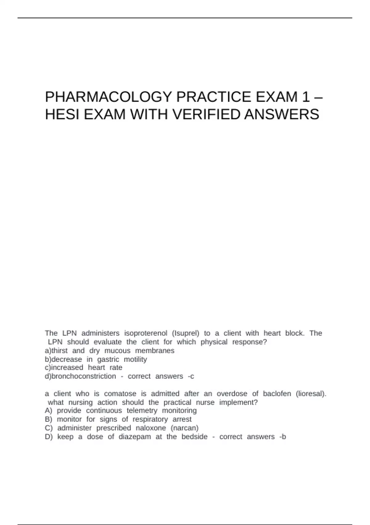 Pharmacology Practice - Hesi