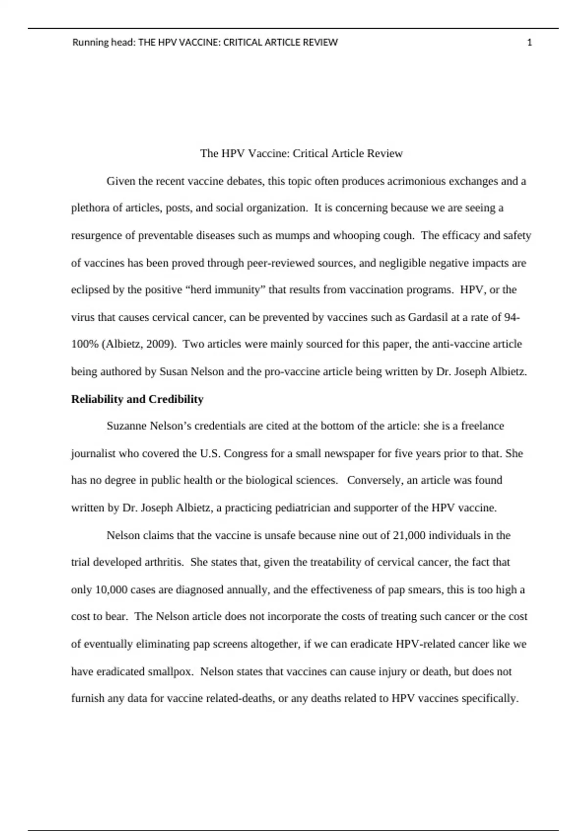 The HPV Vaccine: Critical Article Review