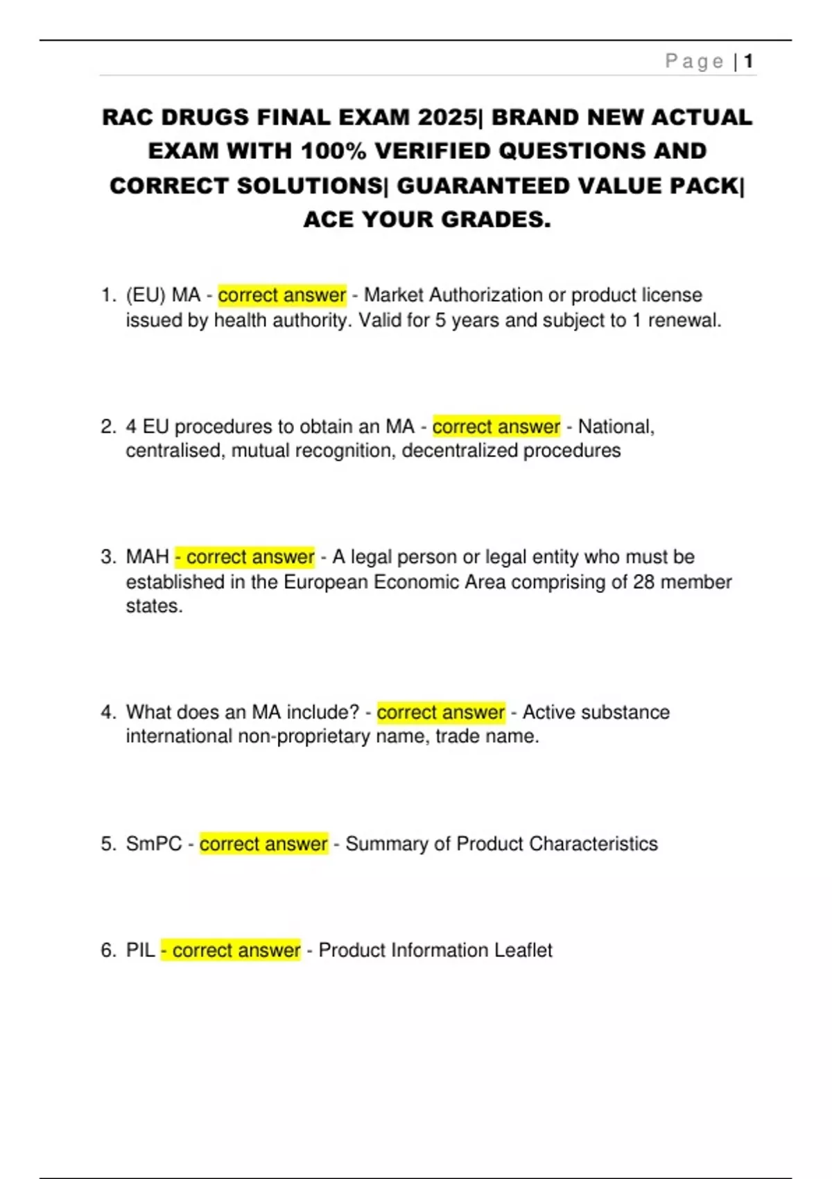 RAC DRUGS FINAL EXAM 2025| BRAND NEW ACTUAL EXAM WITH 100% VERIFIED QUESTIONS AND CORRECT SOLUTIONS| GUARANTEED VALUE PACK| ACE YOUR GRADES.