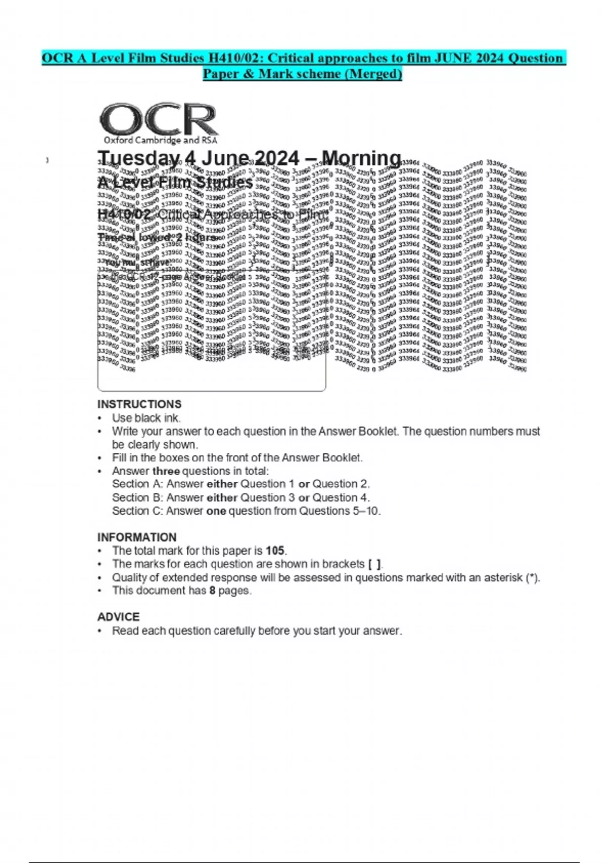 OCR A Level Film Studies H410/02: Critical approaches to film JUNE 2024 Question Paper & Mark scheme (Merged)
