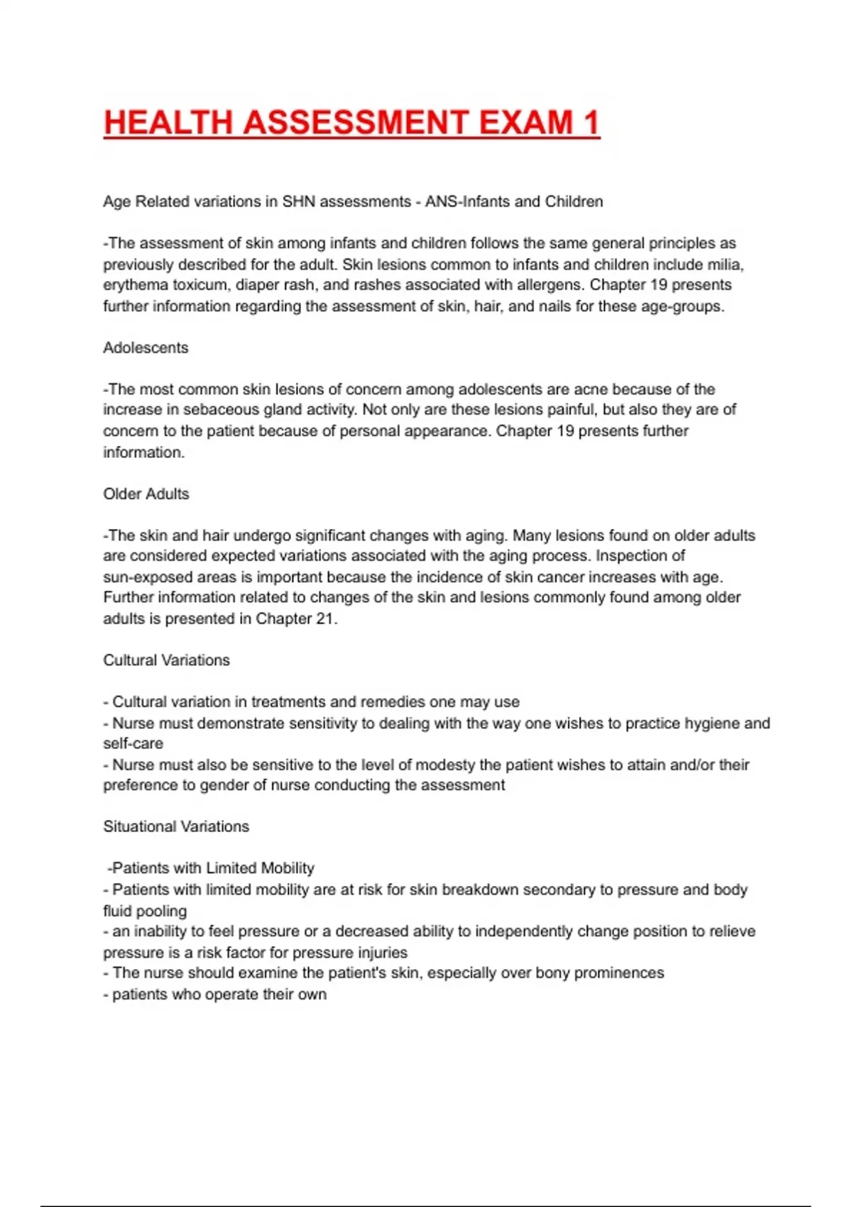 HEALTH ASSESSMENT EXAM 1