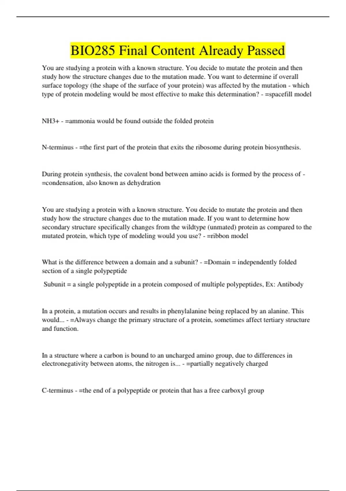 BIO285 Final Content Already Passed
