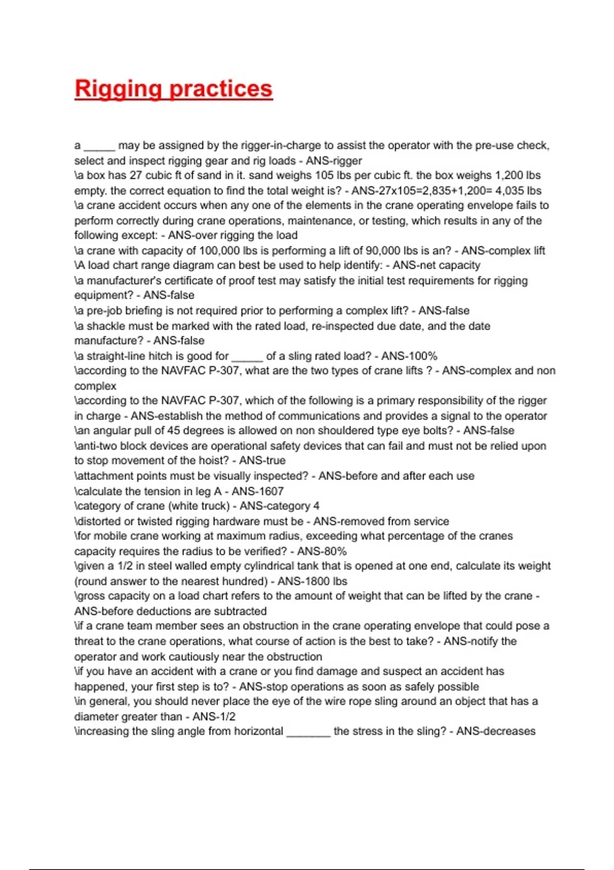 Rigging practices Exam 2025/2026 Questions With Completed Solutions.