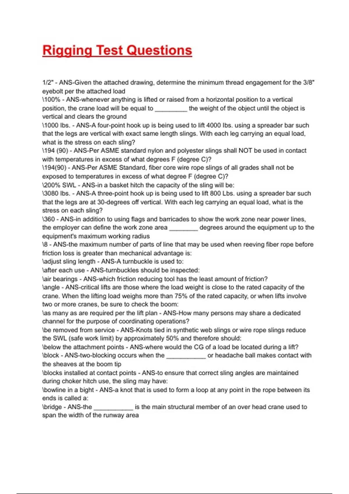 Rigging Test Questions
