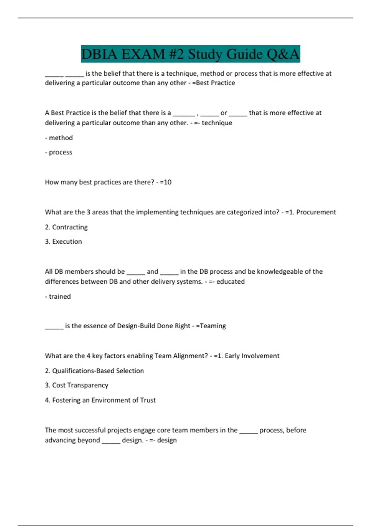 DBIA EXAM #2 Study Guide Q&A