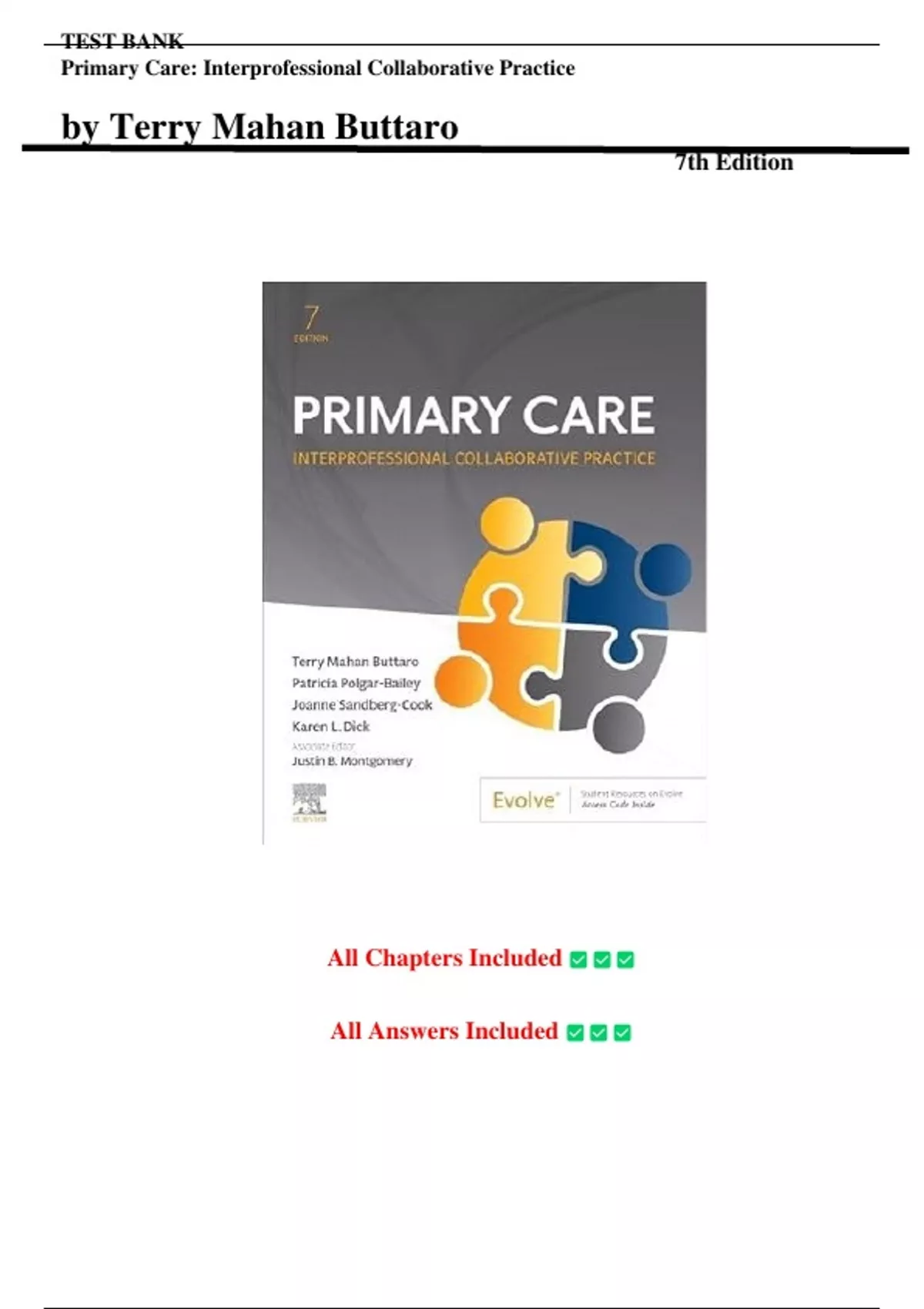 , TEST BANK FOR PRIMARY CARE 7th EDITION BY BUTTARO