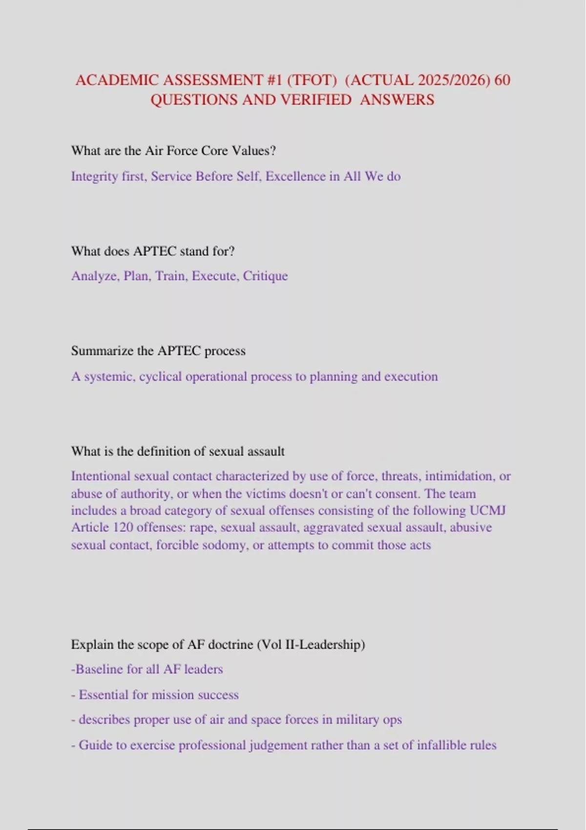 ACADEMIC ASSESSMENT #1 (TFOT) (ACTUAL 2025/2026) 60 QUESTIONS AND VERIFIED ANSWERS