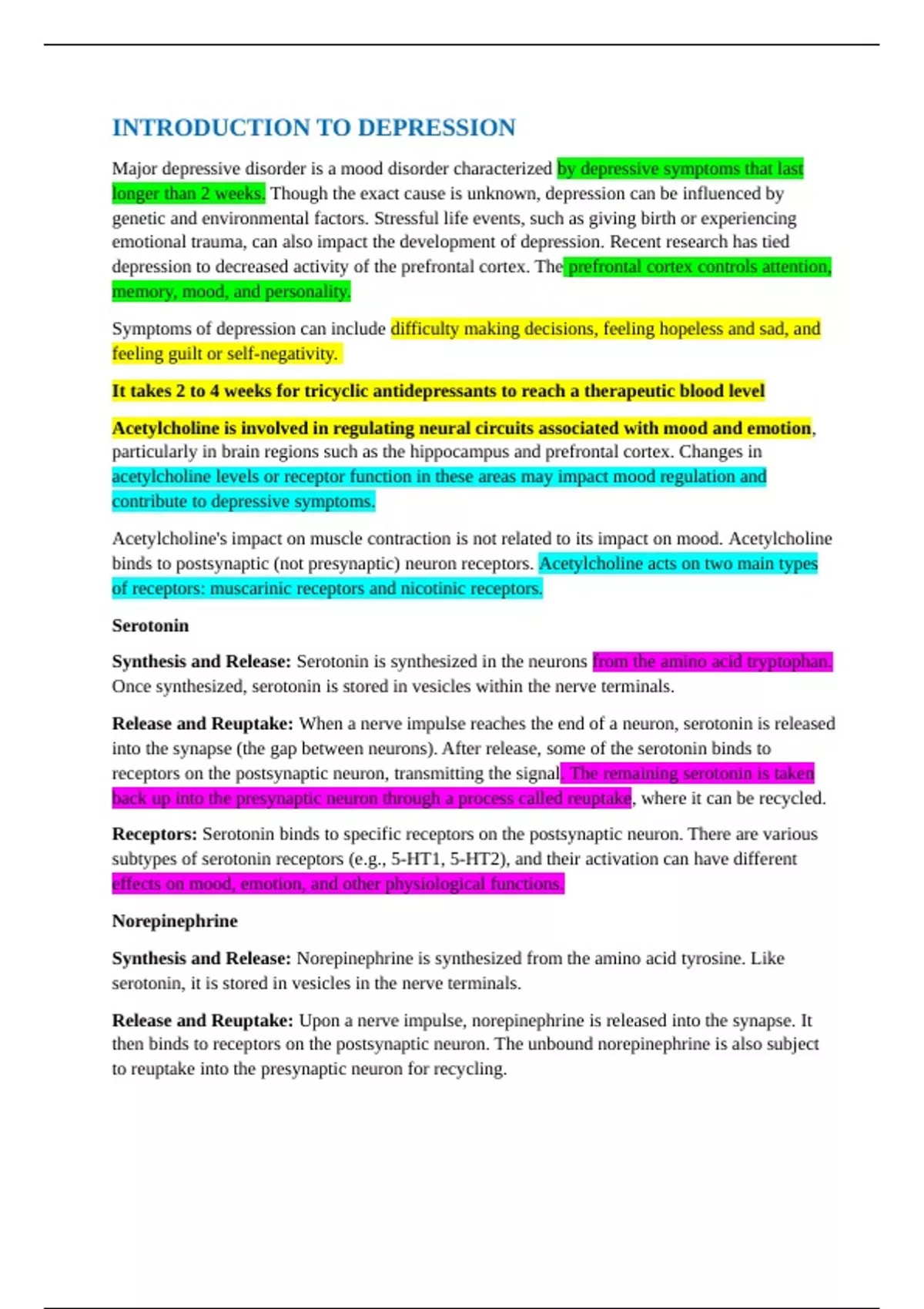 Lecture notes of 16 pages for the course NR 507 / NR507 at Chamberlain College Nursing (pysch disorder,)