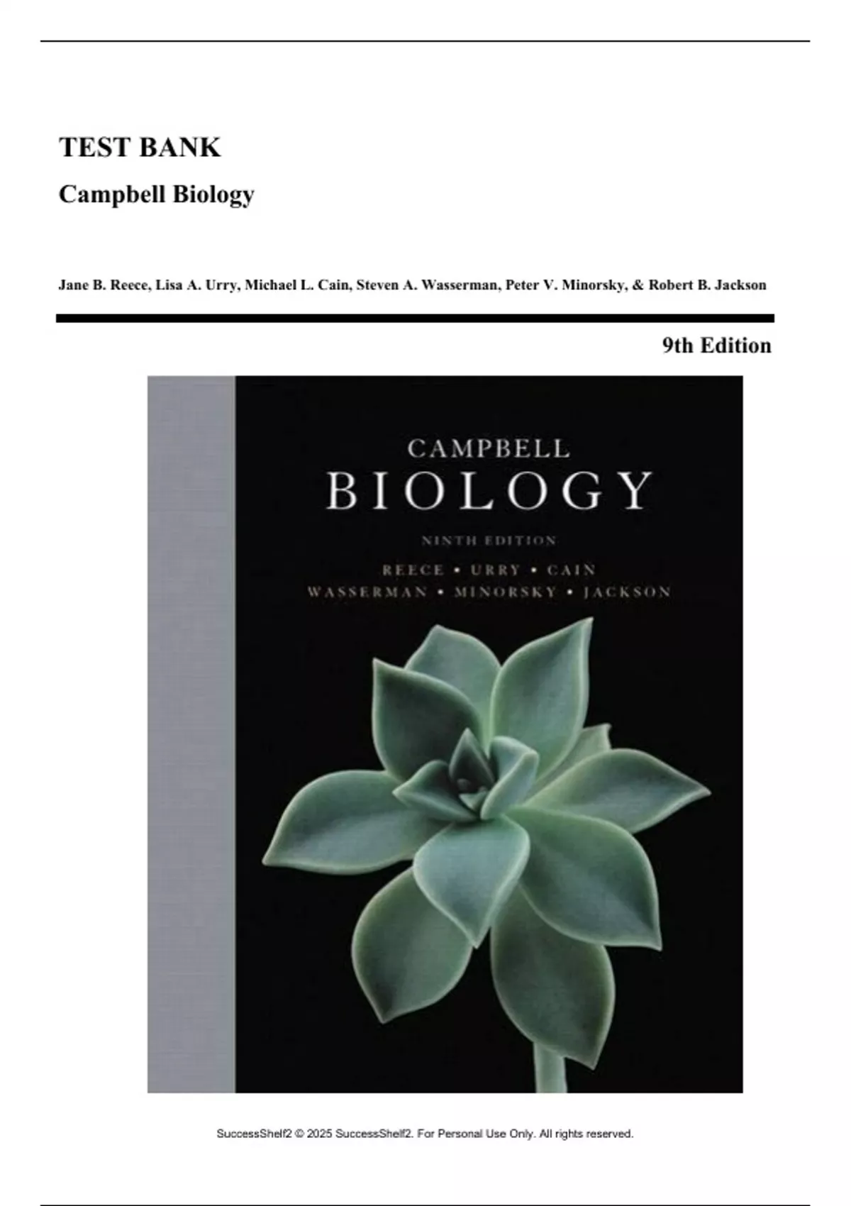 Jane B. Reece, Lisa A. Urry, Michael L. Cain, Steven A. Wasserman, Peter V. Minorsky, & Robert B. Jackson