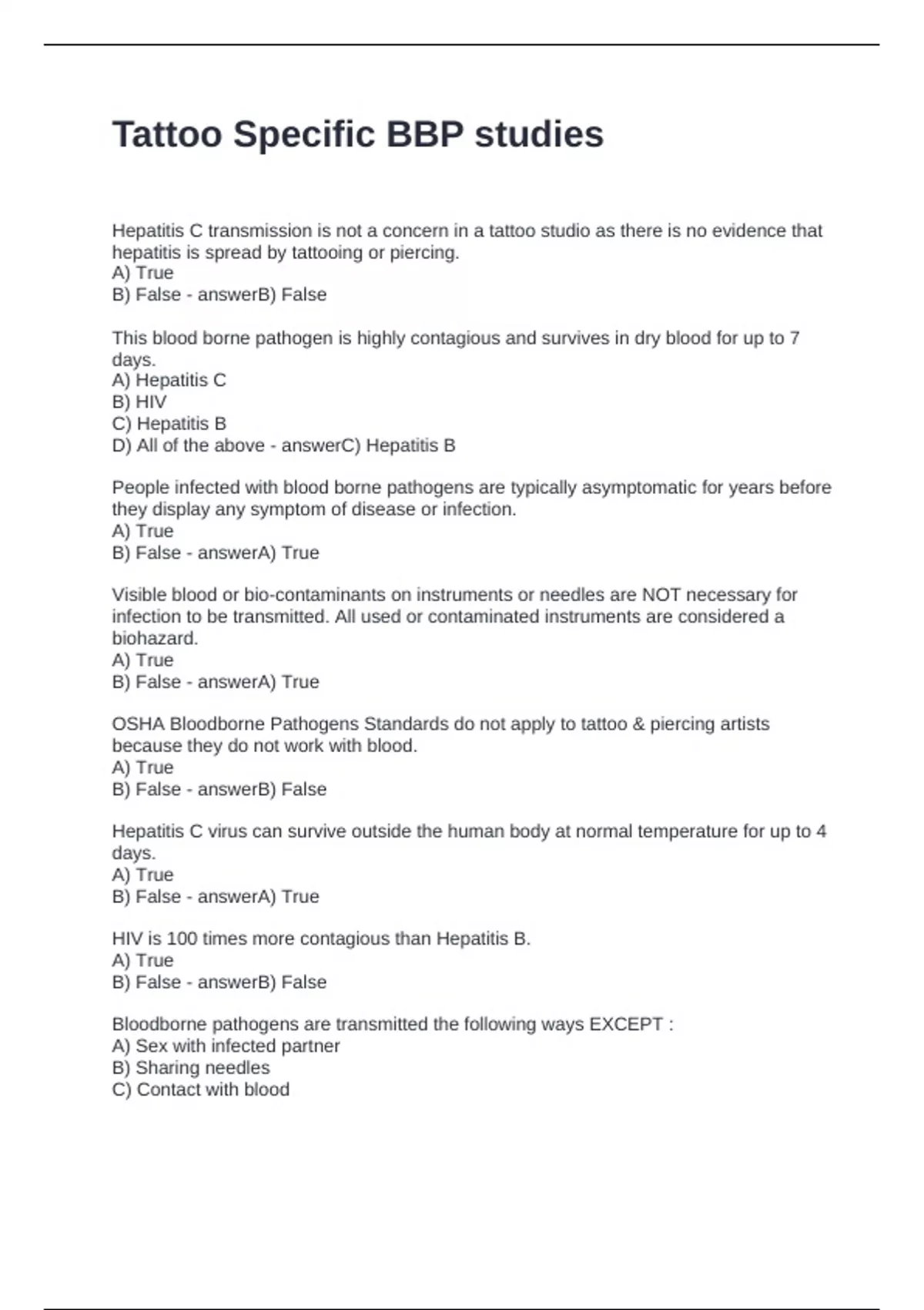 Tattoo Specific BBP studies