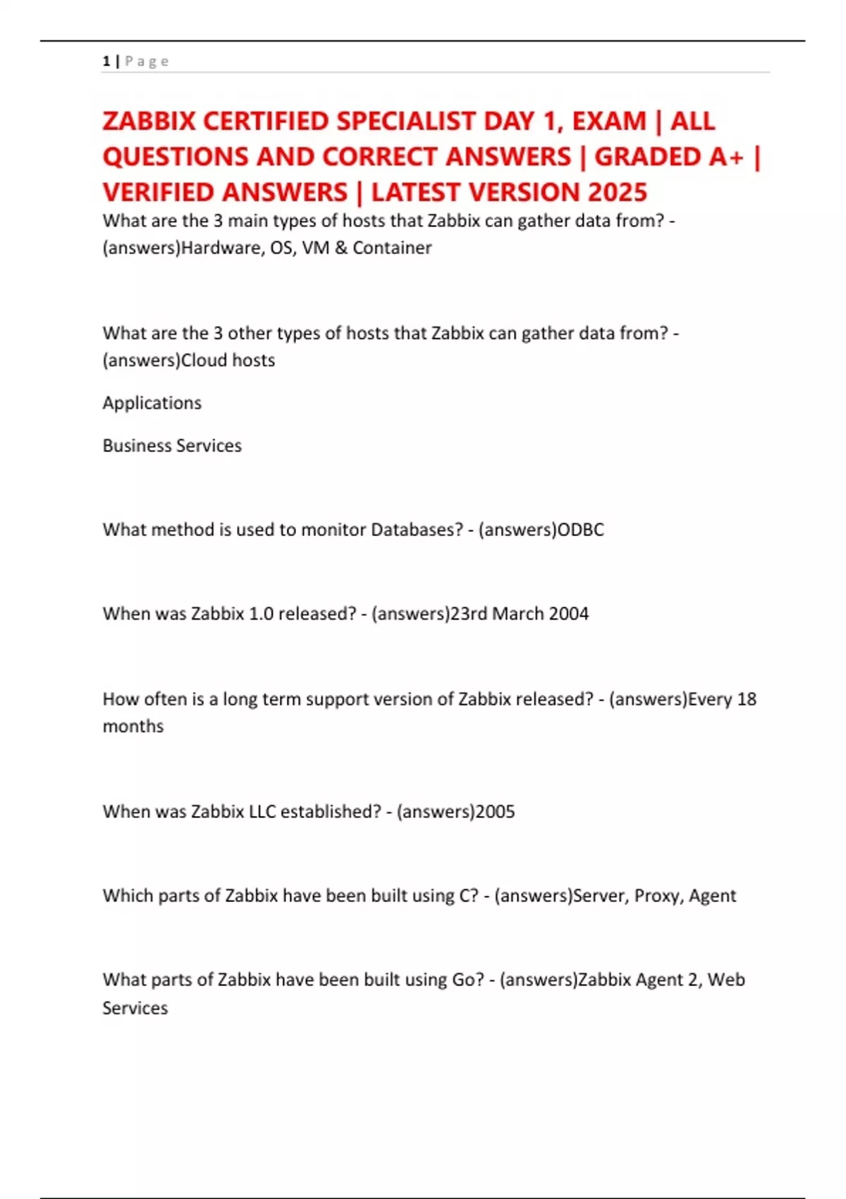 ZABBIX CERTIFIED SPECIALIST DAY 1, EXAM | ALL