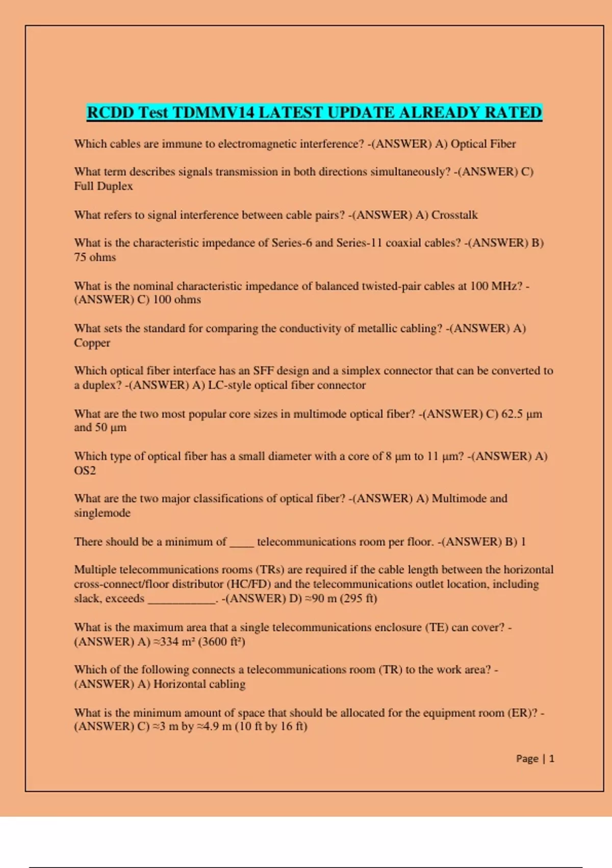 RCDD Test TDMMV14 LATEST UPDATE ALREADY RATED