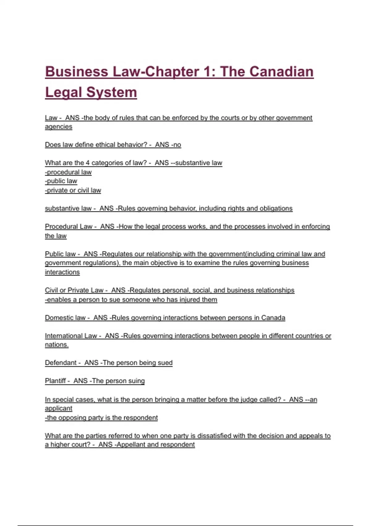 Business Law-Chapter 1: The Canadian