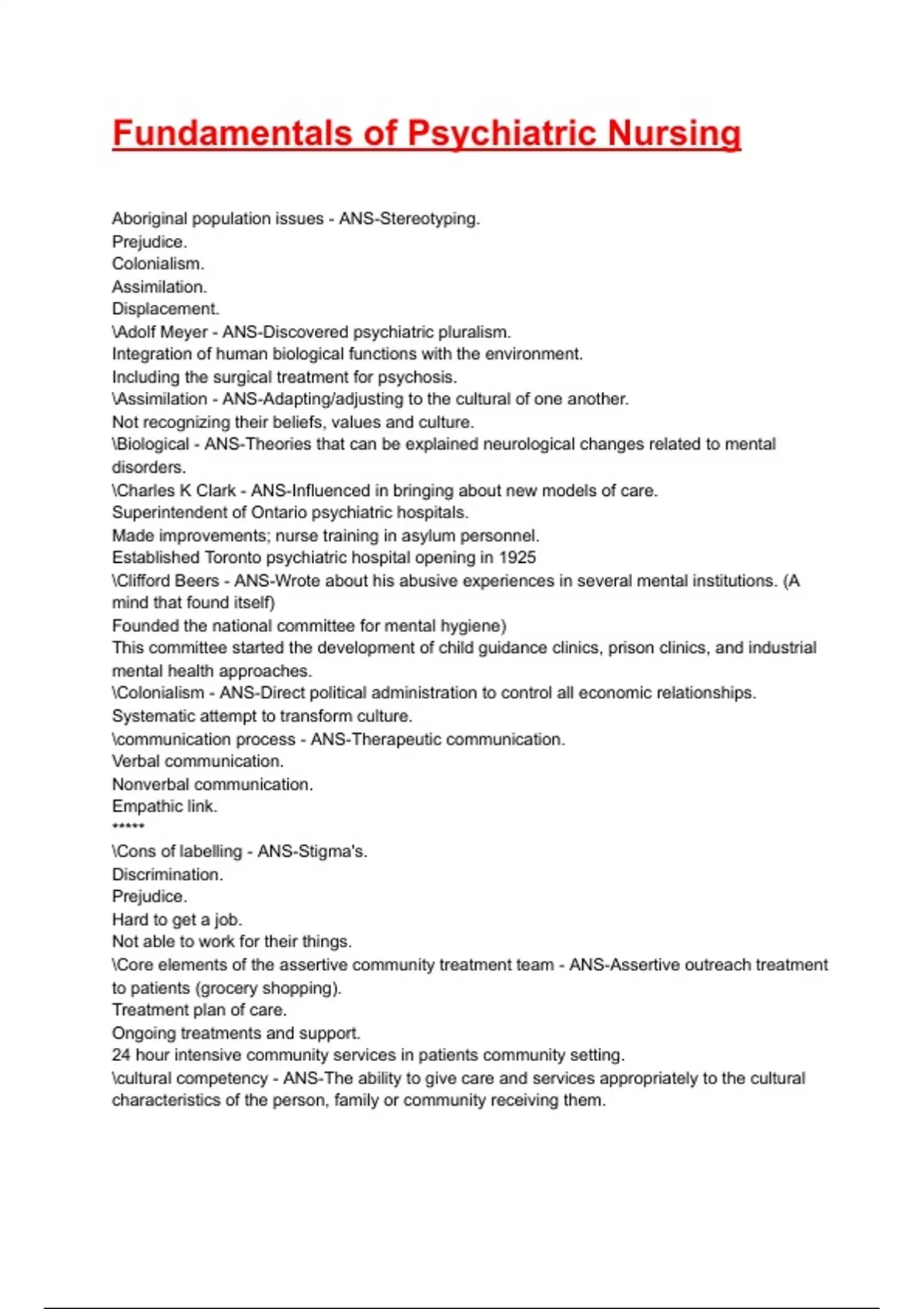 Fundamentals of Psychiatric Nursing