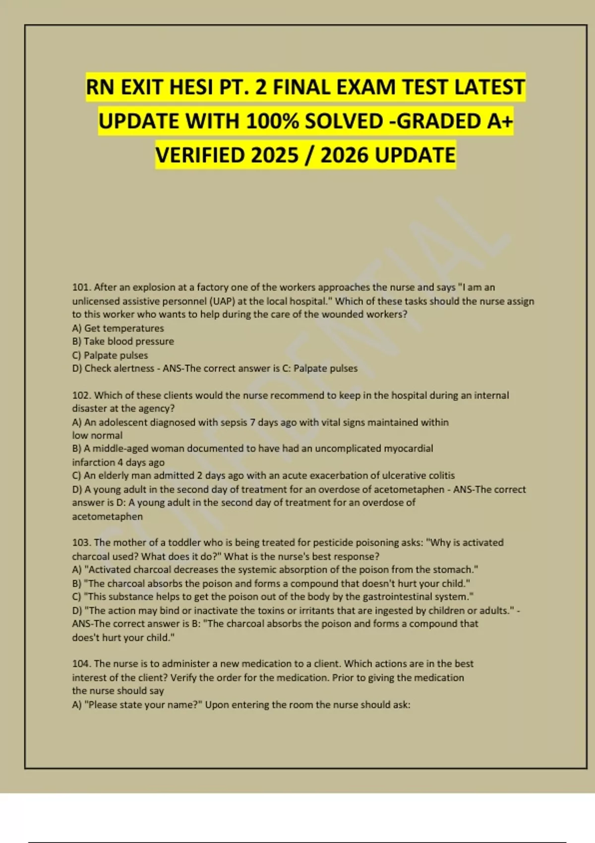105. Several clients are admitted to an adult medical unit. The nurse would ensure