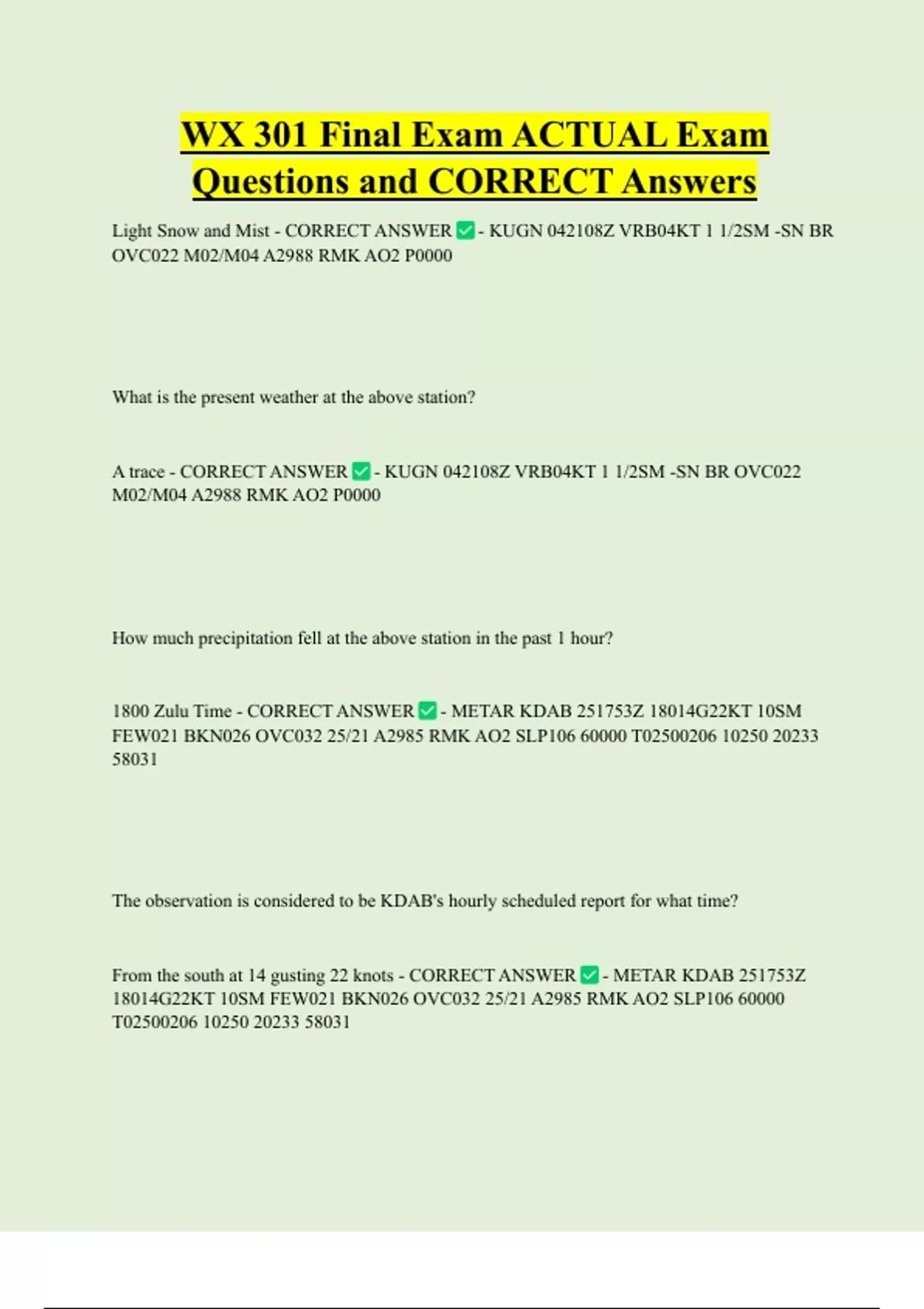 WX 301 Final Exam ACTUAL Exam Questions and CORRECT Answers