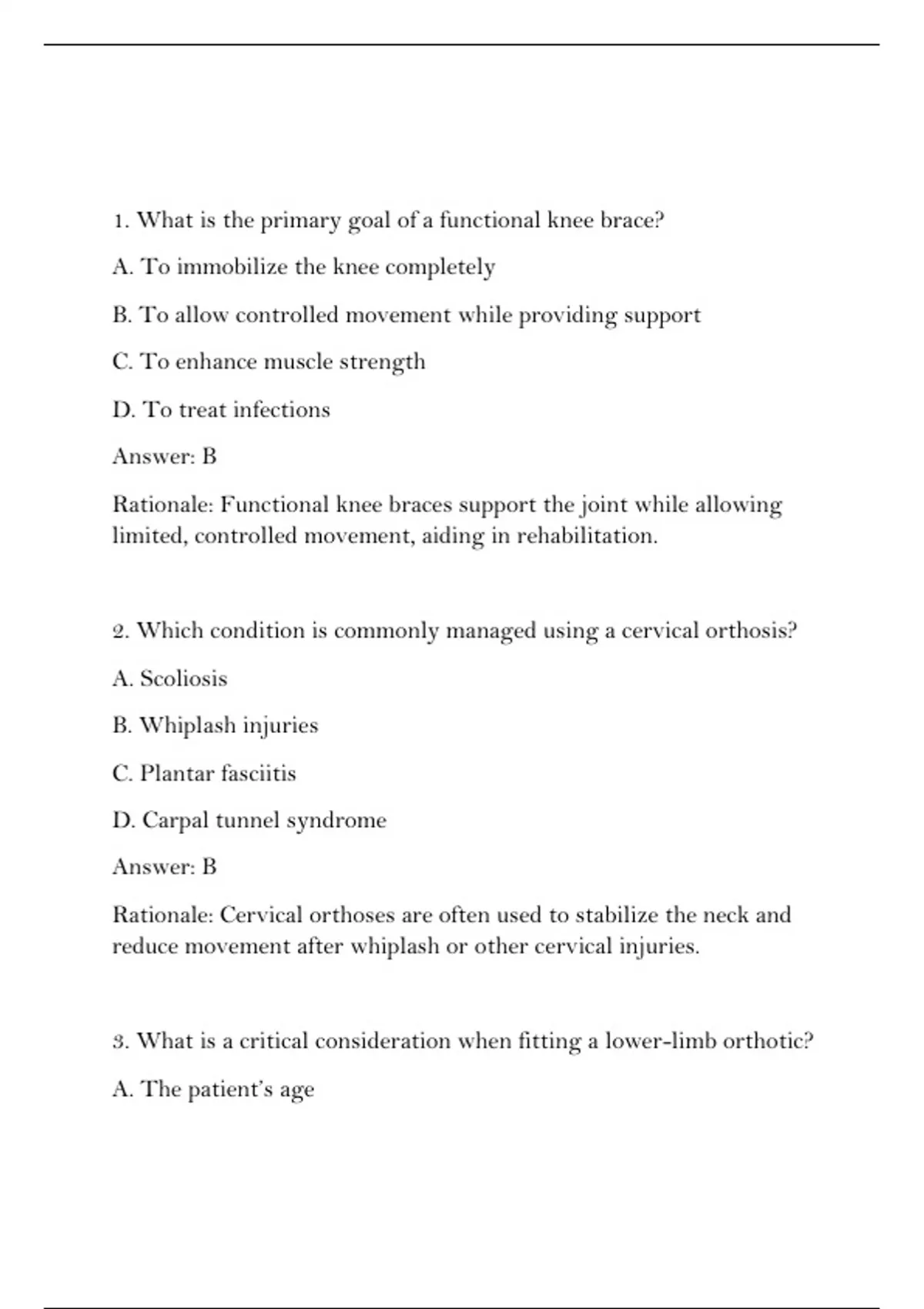 3. What is a critical consideration when fitting a lower-limb orthotic?