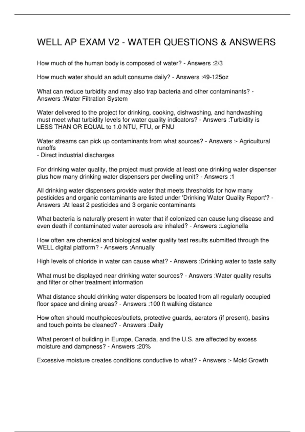 WELL AP EXAM V2 - WATER QUESTIONS & ANSWERS