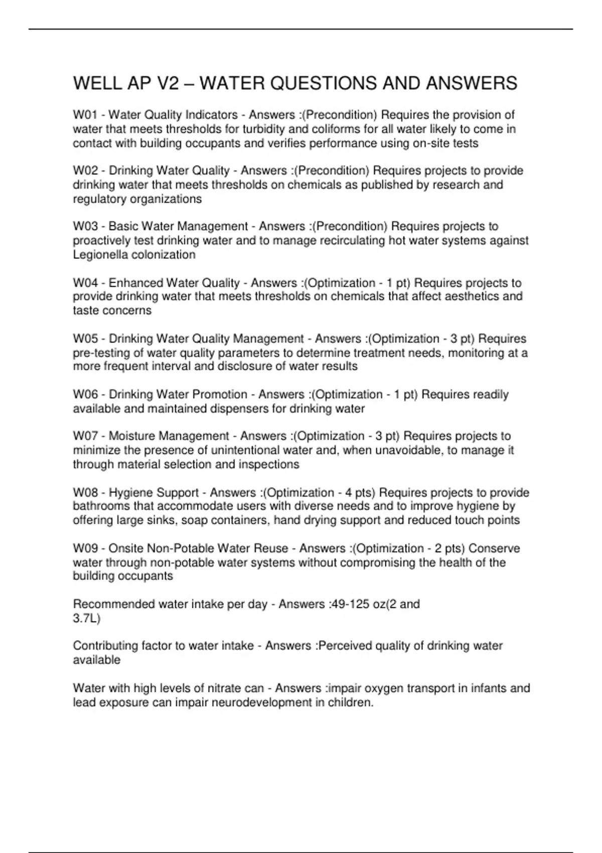 WELL AP V2 – WATER QUESTIONS AND ANSWERS