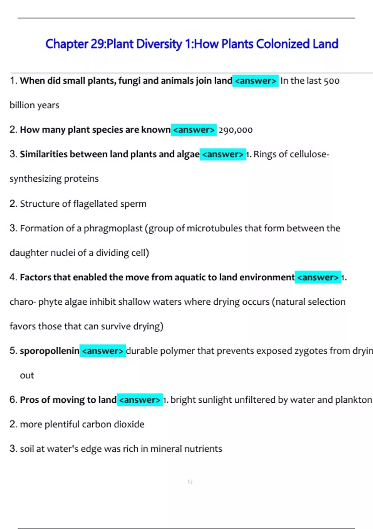 Chapter 29:Plant Diversity 1:How Plants Colonized Land