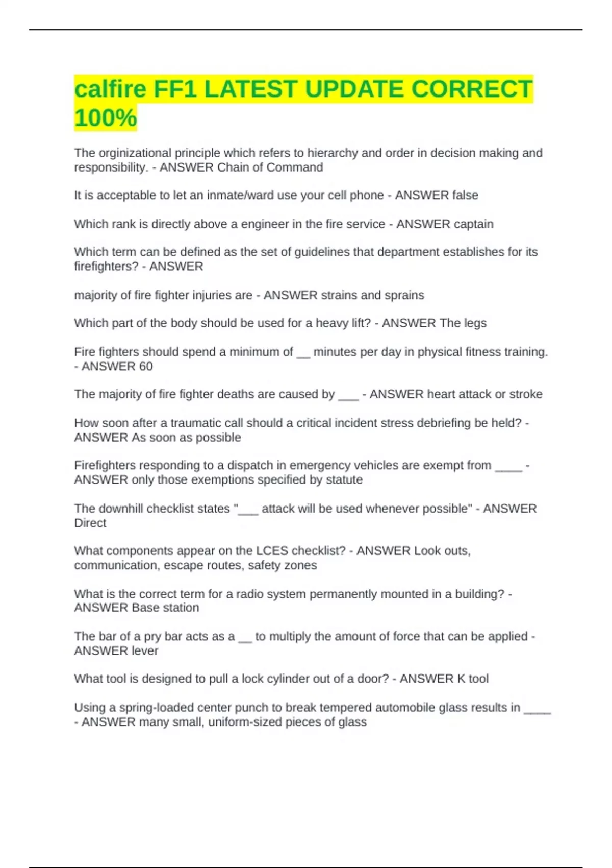 The orginizational principle which refers to hierarchy and order in decision making and responsibility. - ANSWER Chain of Command It is acceptable to let an inmate/ward use your cell phone - ANSWER false Which rank is directly above a engineer in the fire service - ANSWER captain