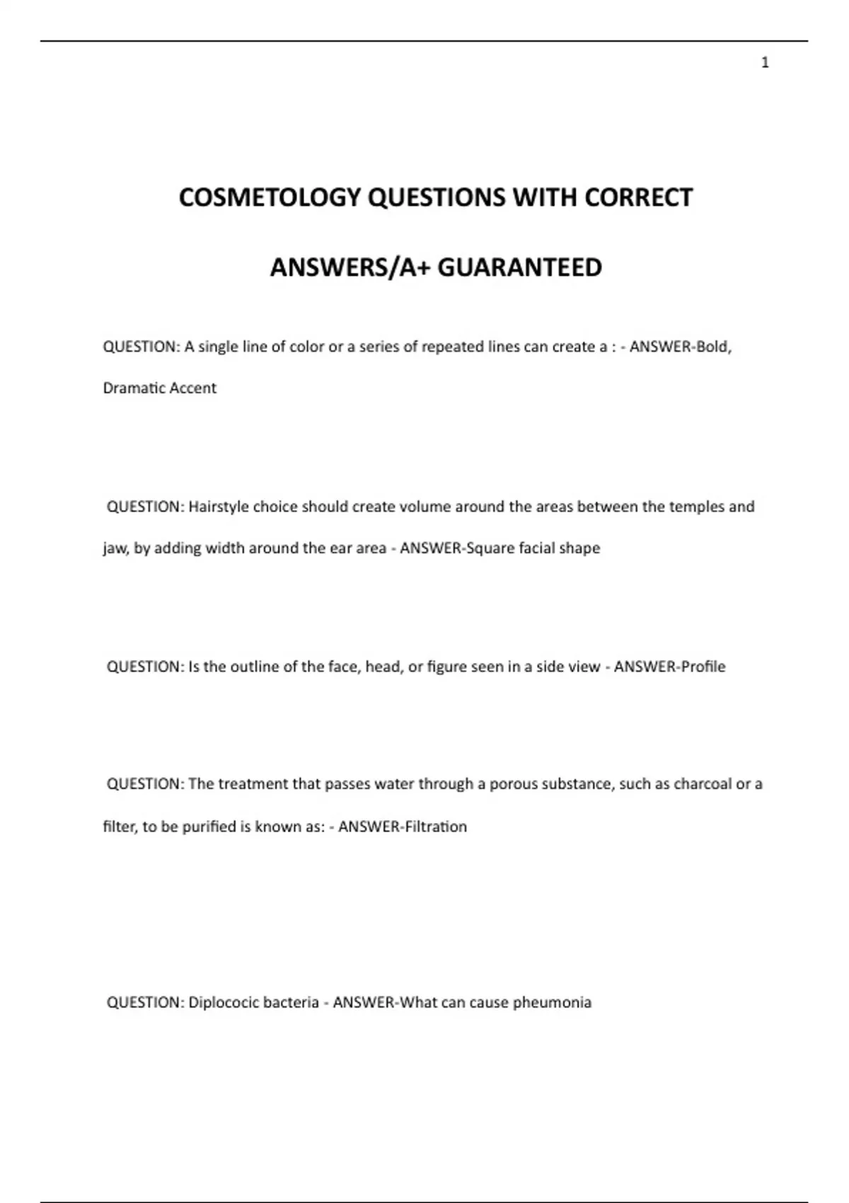 COSMETOLOGY QUESTIONS WITH CORRECT