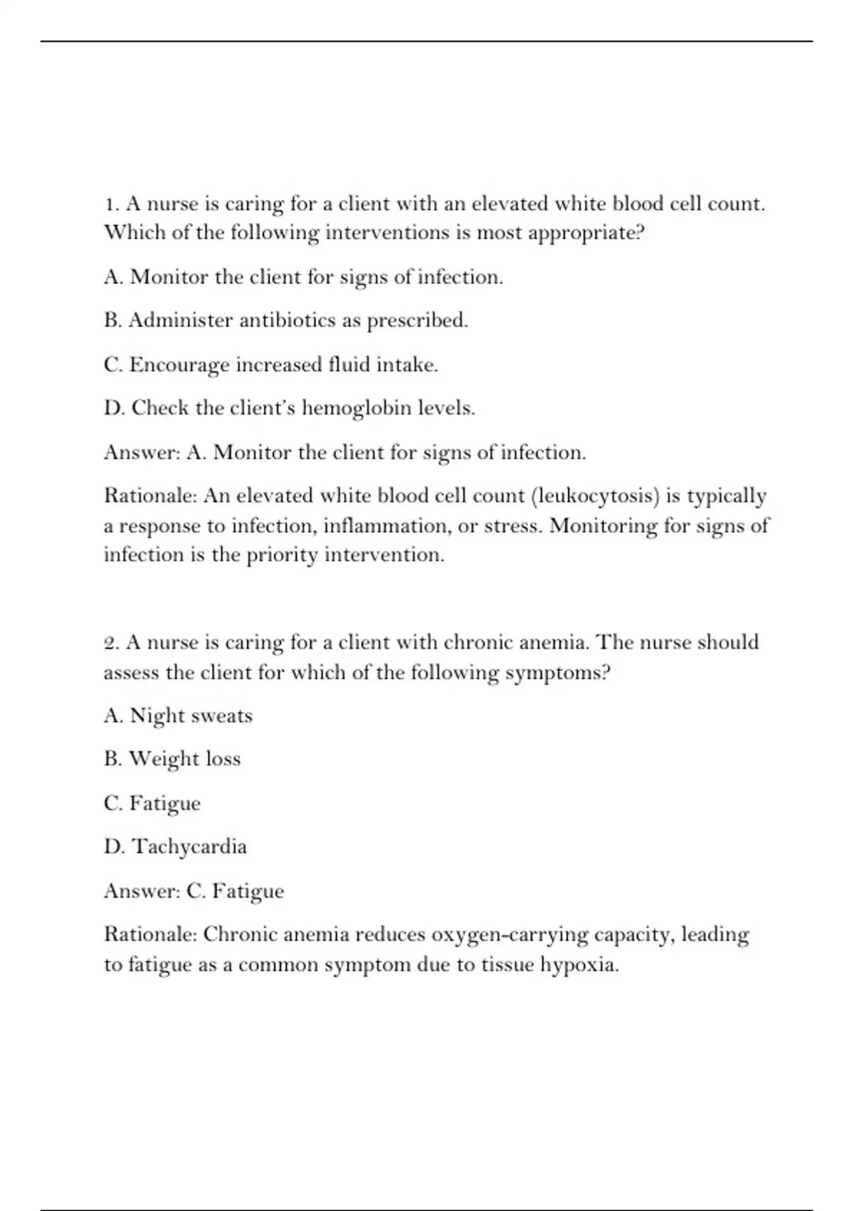 1. A nurse is caring for a client with an elevated white blood cell count.