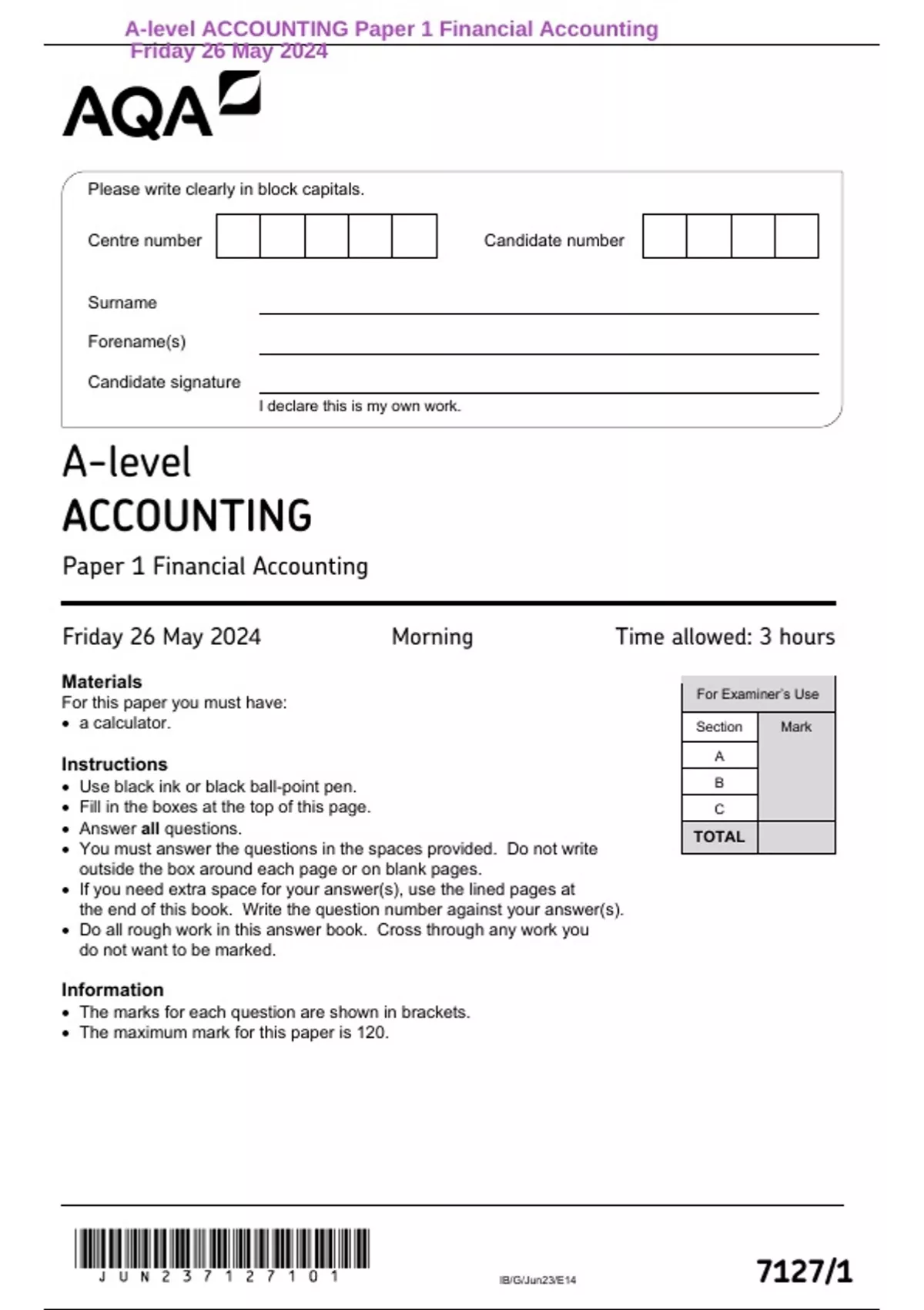 A-level ACCOUNTING Paper 1 Financial Accounting