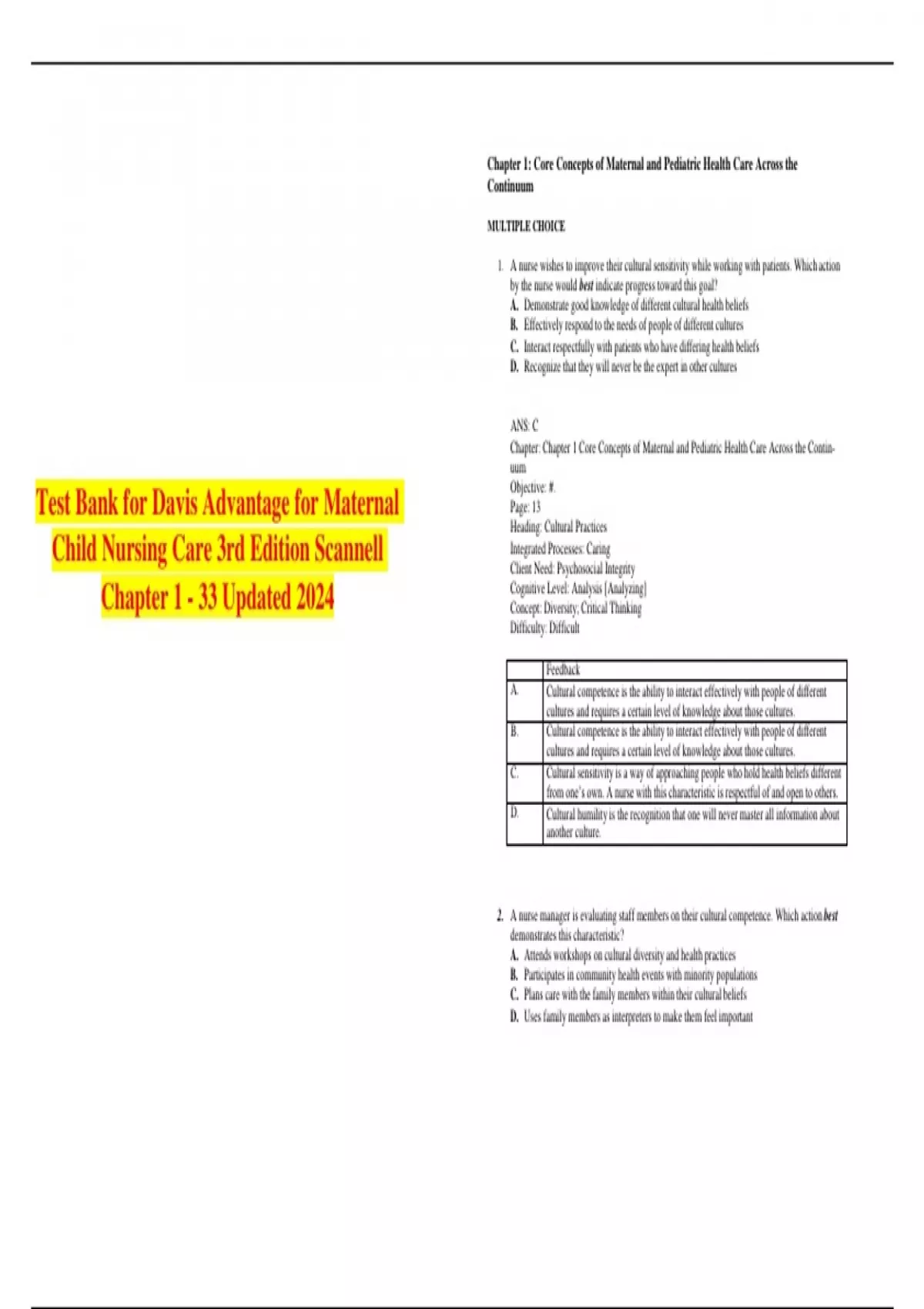 ANS: D B. A culturally competent nurse will assess how religious and spiritual beliefs affect