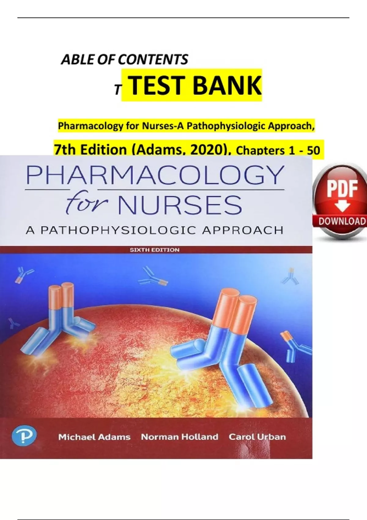 T TEST BANK Pharmacology for Nurses-A Pathophysiologic Approach, 7th Edition (Adams, 2020), Chapters 1 - 50