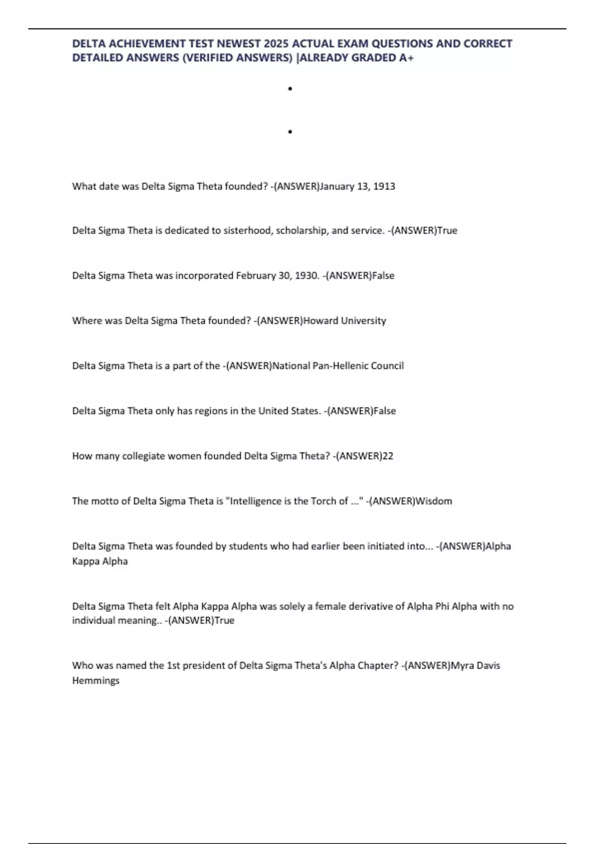 DELTA ACHIEVEMENT TEST NEWEST 2025 ACTUAL EXAM QUESTIONS AND CORRECT