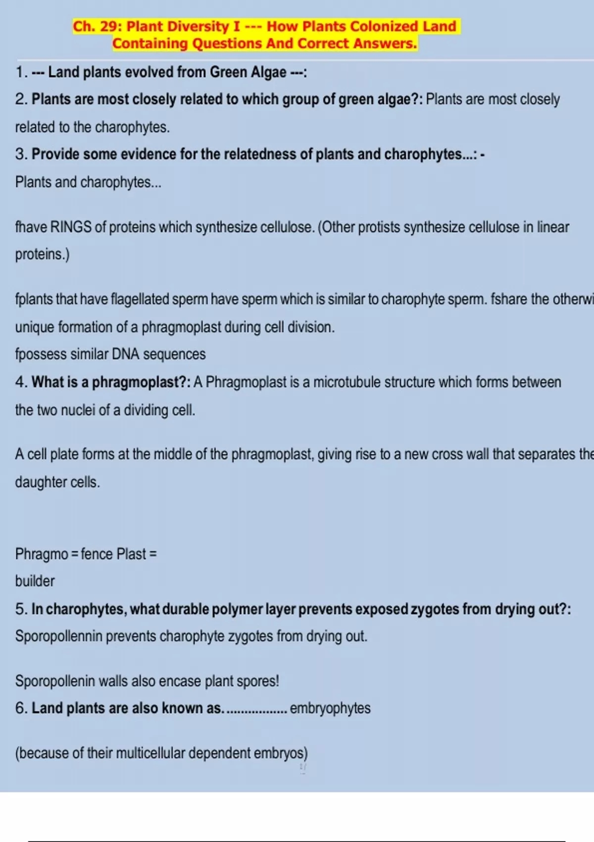 6. Land plants are also known as. ................. embryophytes
