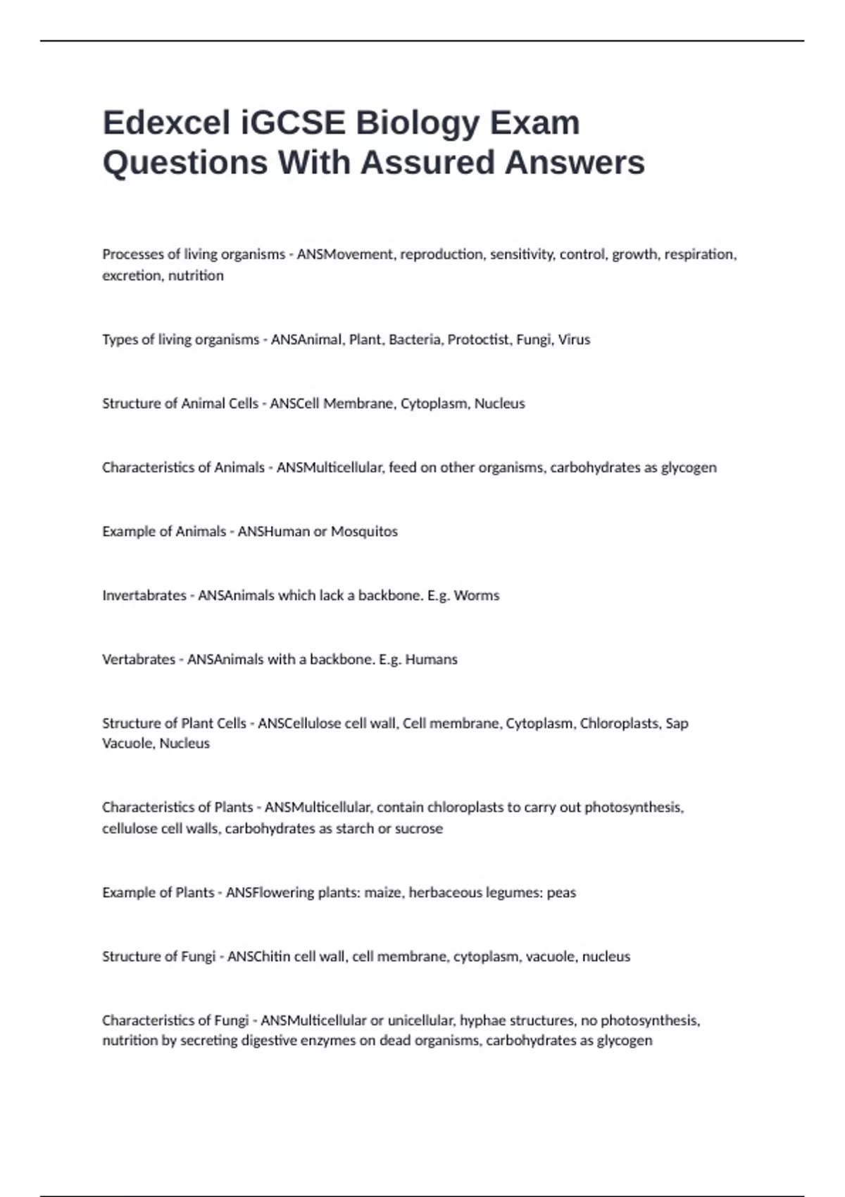Edexcel iGCSE Biology Exam