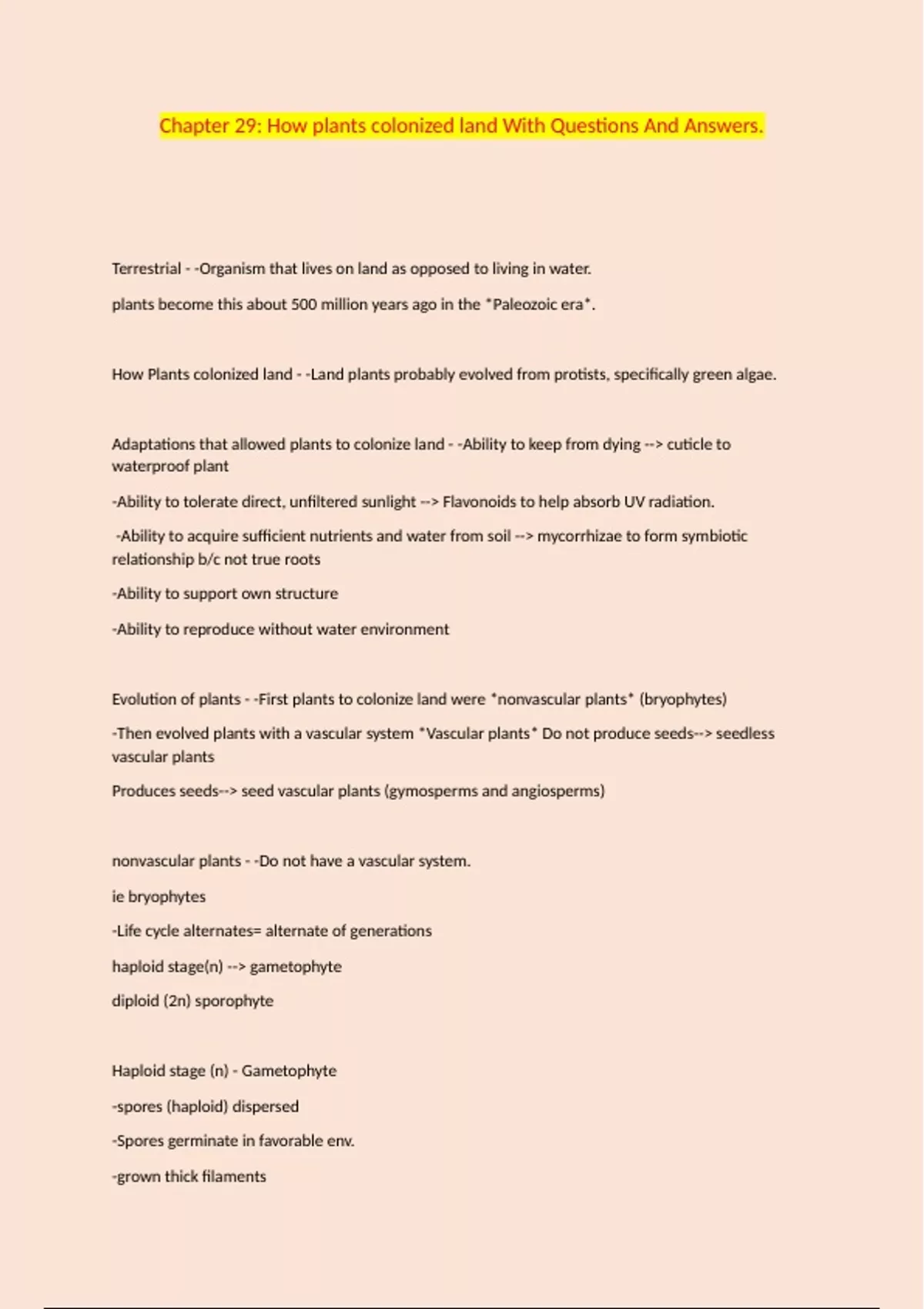 How Plants colonized land - -Land plants probably evolved from protists, specifically green algae.