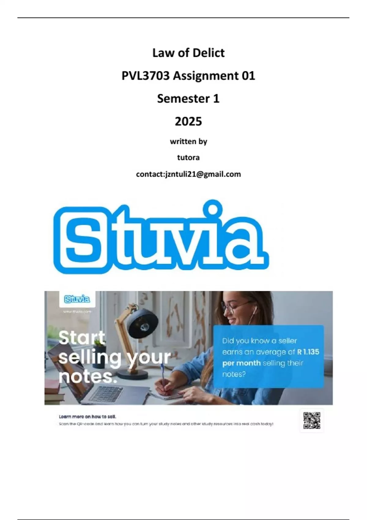 - Law of delict (PVL3703)